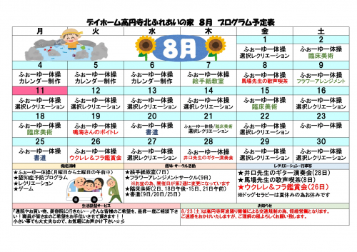 2025.12.10 【高円寺北デイ】カレンダー制作(令和8年1月 完成編) 活動報告 #デイサービス #デイ #介護 #福祉 #奉優会 #デイホーム高円寺北ふれあいの家 #カレンダー制作 2025.12.09 【高円寺北デイ】明るい歌声が響く、歌声喫茶♪ 活動報告 #デイサービス #デイ #介護 #福祉 #奉優会 #デイホーム高円寺北ふれあいの家 #歌 #音楽 2025.12.08 【高円寺北デイ】今月も始まりました。☆彡 活動報告 #デイサービス #デイ #介護 #福祉 #奉優会 #デイホーム高円寺北ふれあいの家 #カレンダー制作 2025.12.04 【高円寺北デイ】冬の訪れを感じる「絵手紙教室」(完成編) 活動報告 #デイサービス #デイ #介護 #福祉 #奉優会 #絵手紙 2025.12.01 【高円寺デイ】★12月の献立★ お知らせ #デイサービス #デイ #介護 #福祉 #奉優会 #デイホーム高円寺北ふれあいの家 #12月の献立 2025.12.01 【高円寺デイ】★12月のプログラム★ お知らせ #デイサービス #デイ #介護 #福祉 #奉優会 #デイホーム高円寺北ふれあいの家 #12月のプログラム 2025.11.28 【高円寺デイ】午後のゲーム~秋を釣ろう!?~ 活動報告 #デイサービス #デイ #介護 #福祉 #奉優会 #デイホーム高円寺北ふれあいの家 #釣りゲーム 2025.11.26 【高円寺デイ】ギター演奏会 活動報告 #デイサービス #デイ #介護 #福祉 #奉優会 #デイホーム高円寺北ふれあいの家 #ギター演奏会 2025.11.25 【高円寺北デイ】蓄音機登場! 活動報告 #デイサービス #デイ #イベント #介護 #福祉 #奉優会 #デイホーム高円寺北ふれあいの家 #蓄音機 2025.11.24 【高円寺北デイ】本格的な演奏を堪能しました! 活動報告 #デイサービス #デイ #イベント #介護 #福祉 #奉優会 #デイホーム高円寺北ふれあいの家 #音楽演奏会 2025.11.24 【高円寺北デイ】練馬と言えば…。 活動報告 #デイサービス #デイ #介護 #福祉 #イベント #奉優会 #デイホーム高円寺北ふれあいの家 #音楽鑑賞会 2025.11.22 【高円寺北デイ】ポスターにて告知。 活動報告 #デイサービス #デイ #イベント #介護 #福祉 #奉優会 #デイホーム高円寺北ふれあいの家 #コンサート 2025.11.20 【高円寺デイ】★ふれあい通信・11月号★ お知らせ #デイサービス #デイ #介護 #福祉 #奉優会 #デイホーム高円寺北ふれあいの家 #ふれあい通信 2025.11.15 【高円寺北デイ】秋を彩るフラワーアレンジメント ~11月編~ 活動報告 #デイサービス #デイ #介護 #福祉 #奉優会 #フラワーアレンジメント 2025.11.13 【高円寺デイ】昼食~秋の味覚御膳~ 活動報告 #デイサービス #デイ #介護 #福祉 #奉優会 #デイホーム高円寺北ふれあいの家 #昼食 1 2 3 … 28