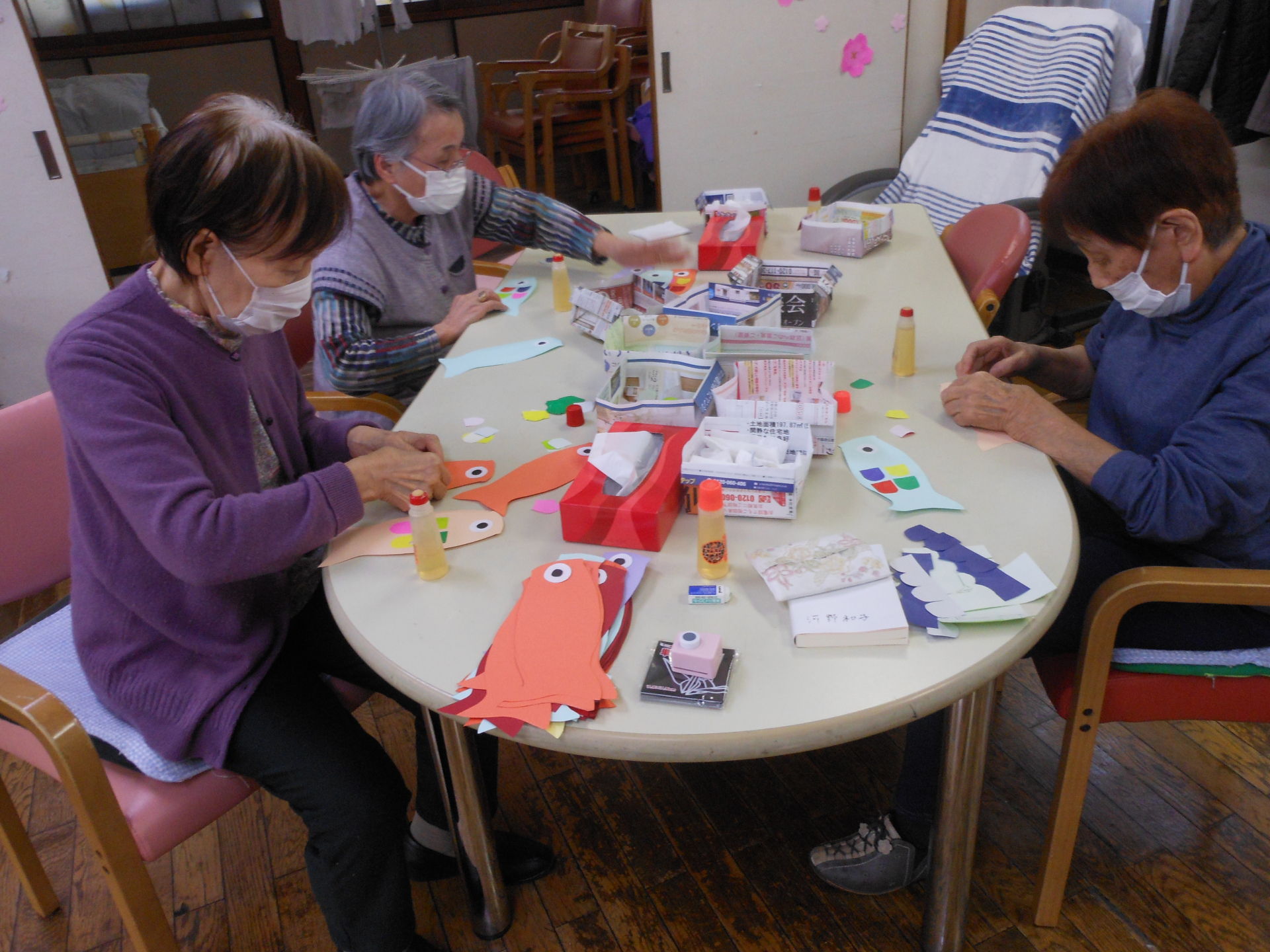 4月中に皆様でコツコツと作成した鯉のぼりが出来ました\(^o^)/