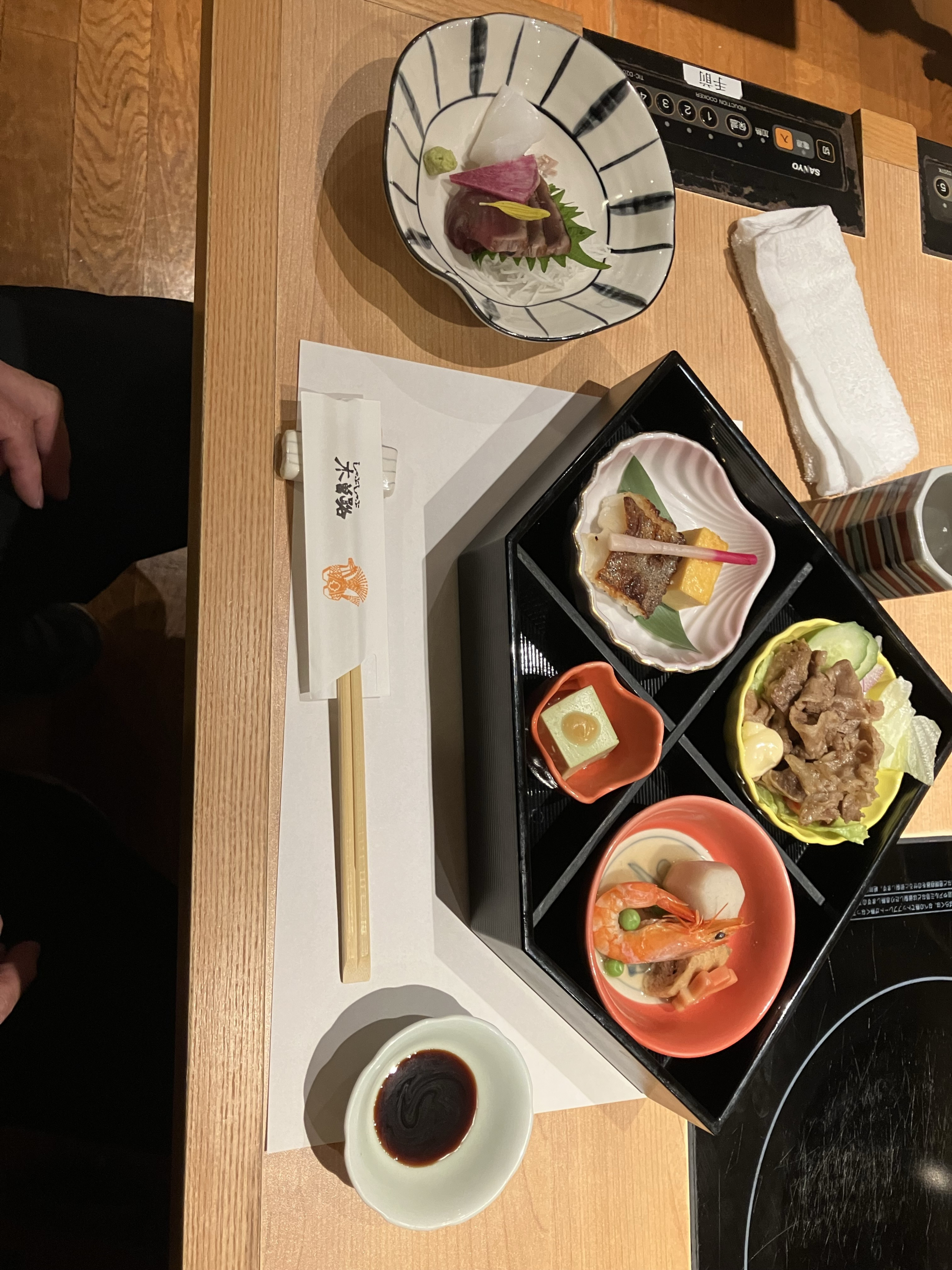 刺身やてんぷら、お肉などが綺麗な和定食が人気でしたが、すきやきも美味しそうでした。