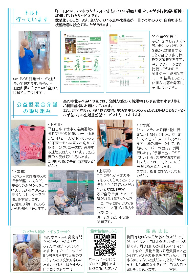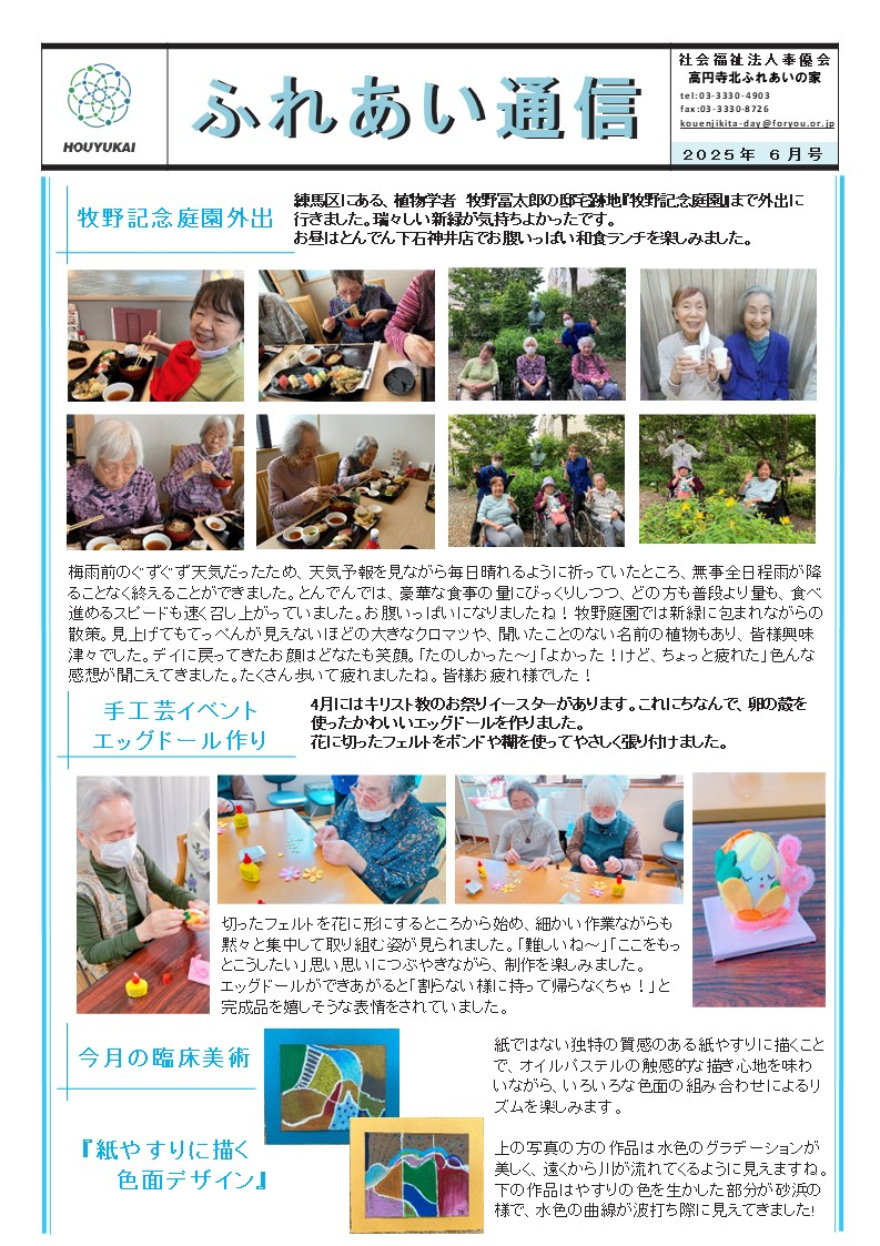 ふれあいの家では1ヶ月ごとの活動内容を新聞にして、ご利用者様にお渡しさせて頂いております。