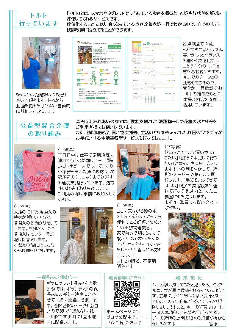 ふれあいの家では1ヶ月ごとの活動内容を新聞にして、ご利用者様にお渡しさせて頂いております。
