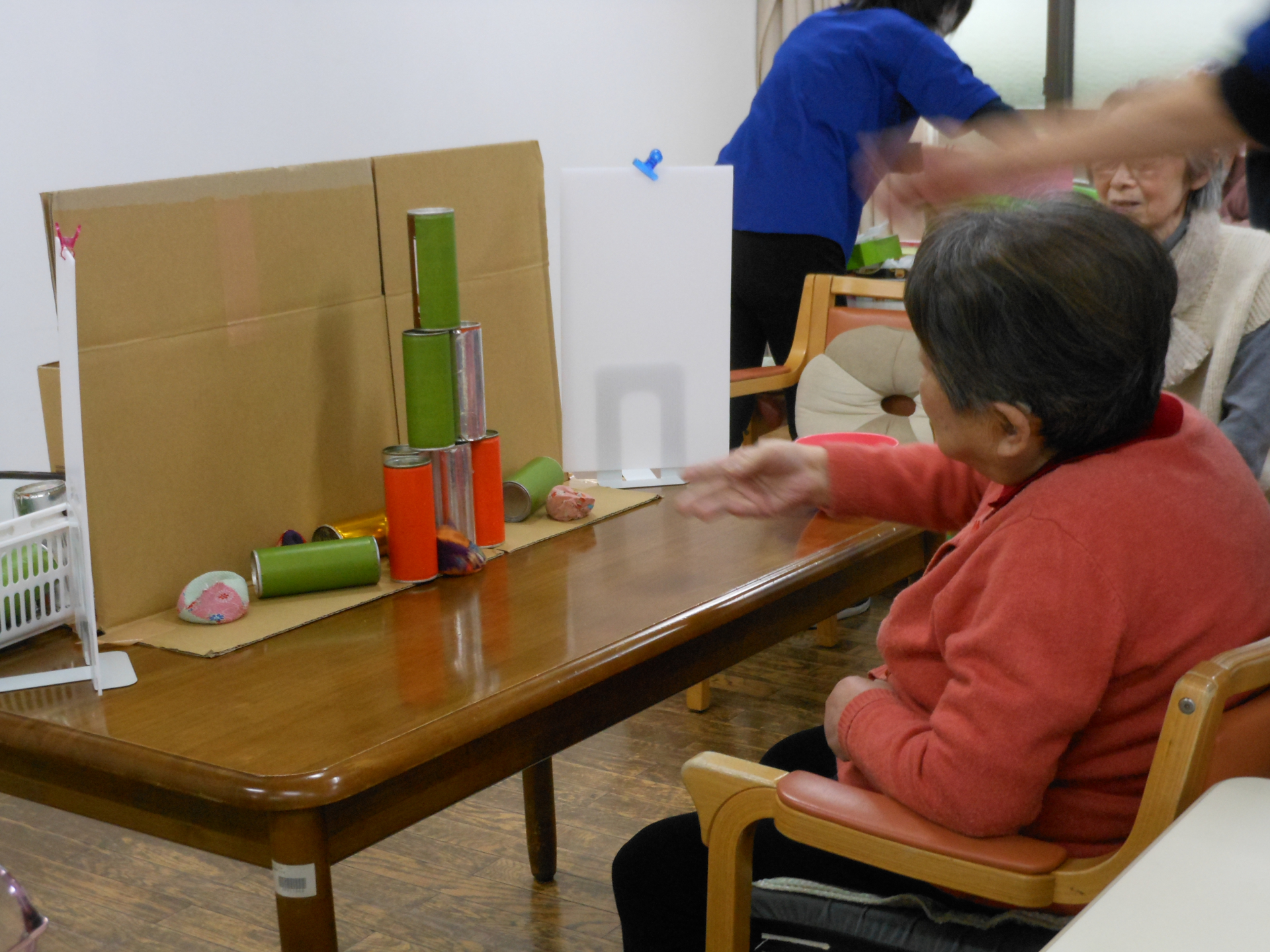 的の缶には思うように簡単には当たりませんが、その分当たった時の達成感と盛り上がりはすごく、熱いレクリエーションとなりました。☆