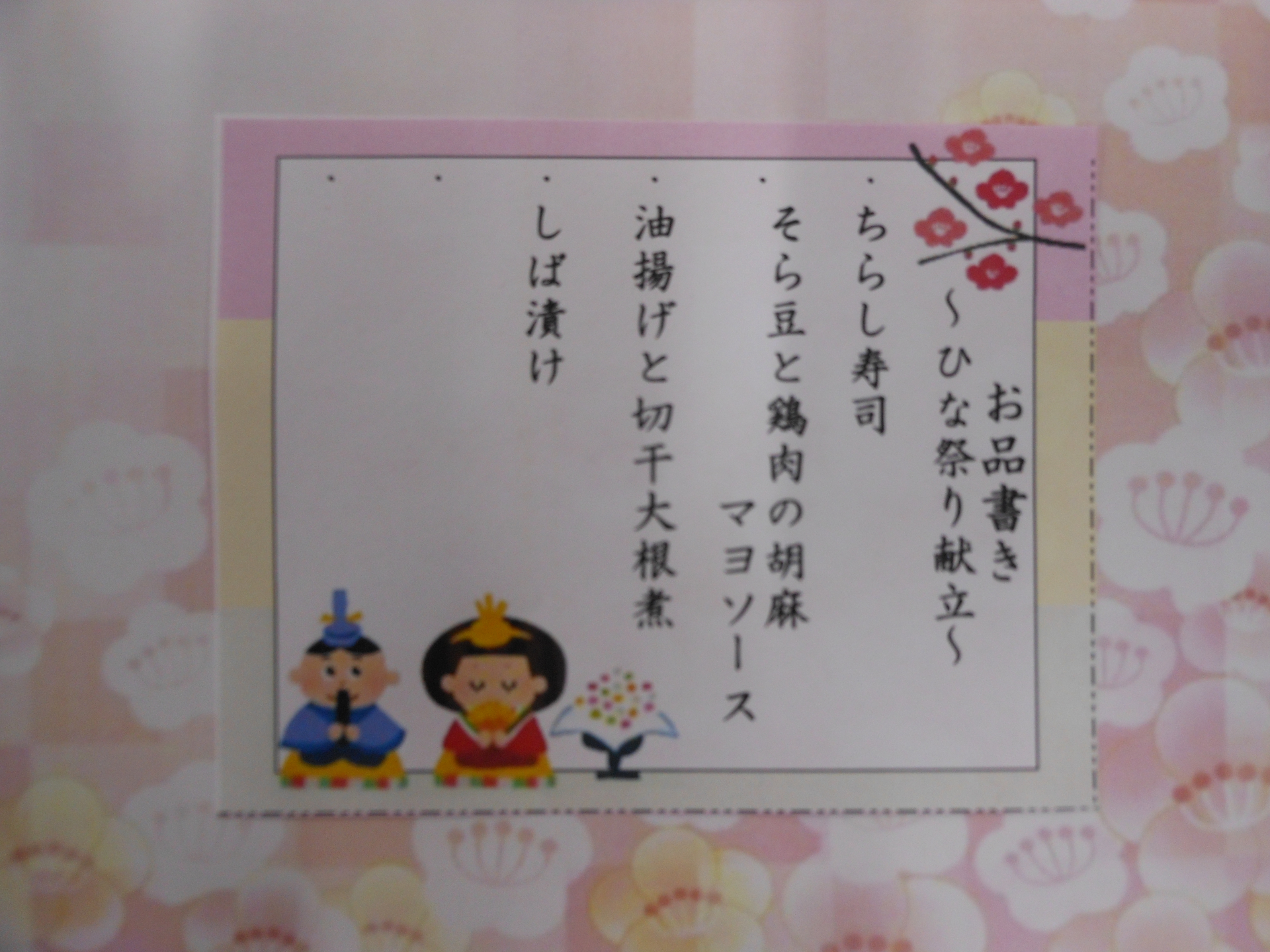【高円寺デイ】本日の昼食~ひな祭り献立~