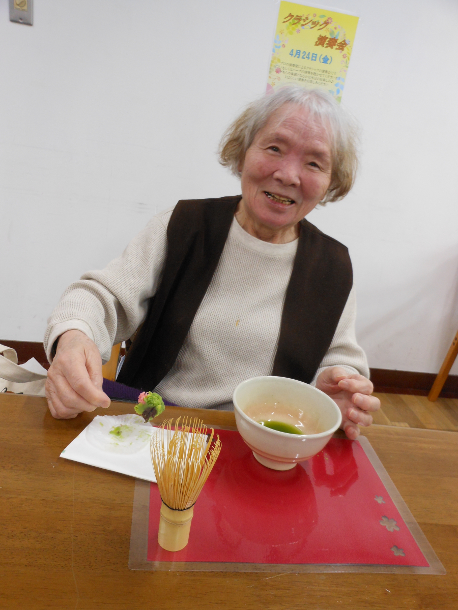 お茶とお菓子を楽しんでいる皆様の笑顔が見れました~。