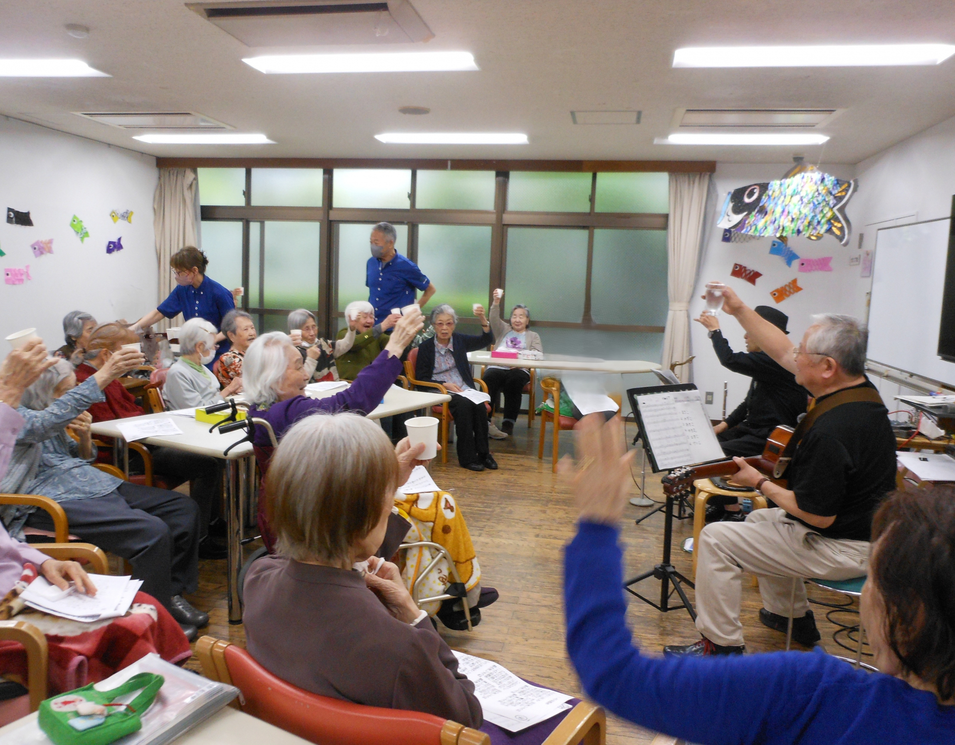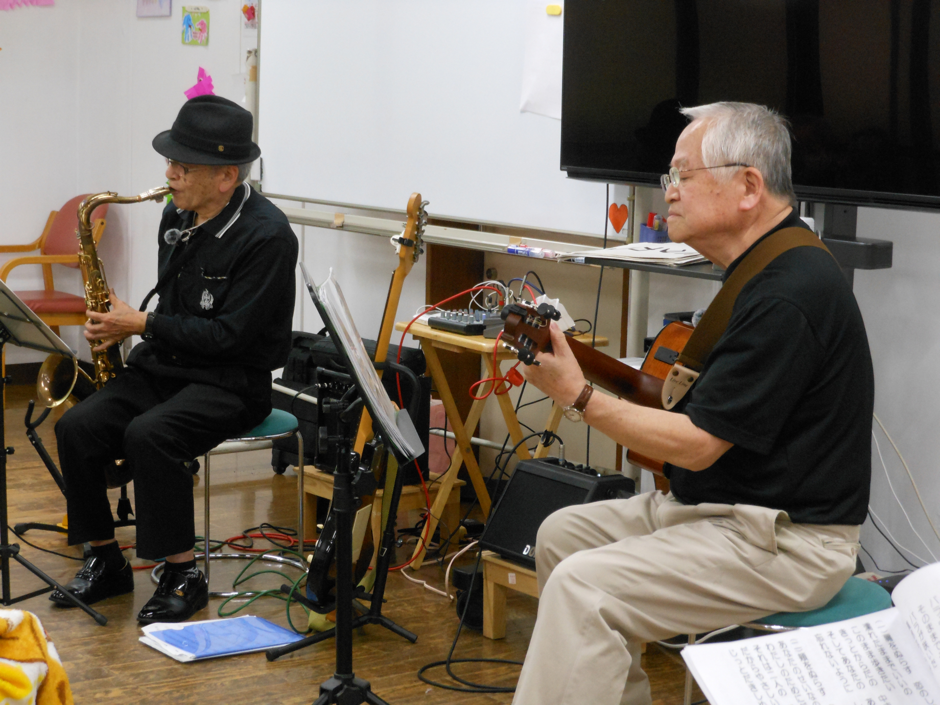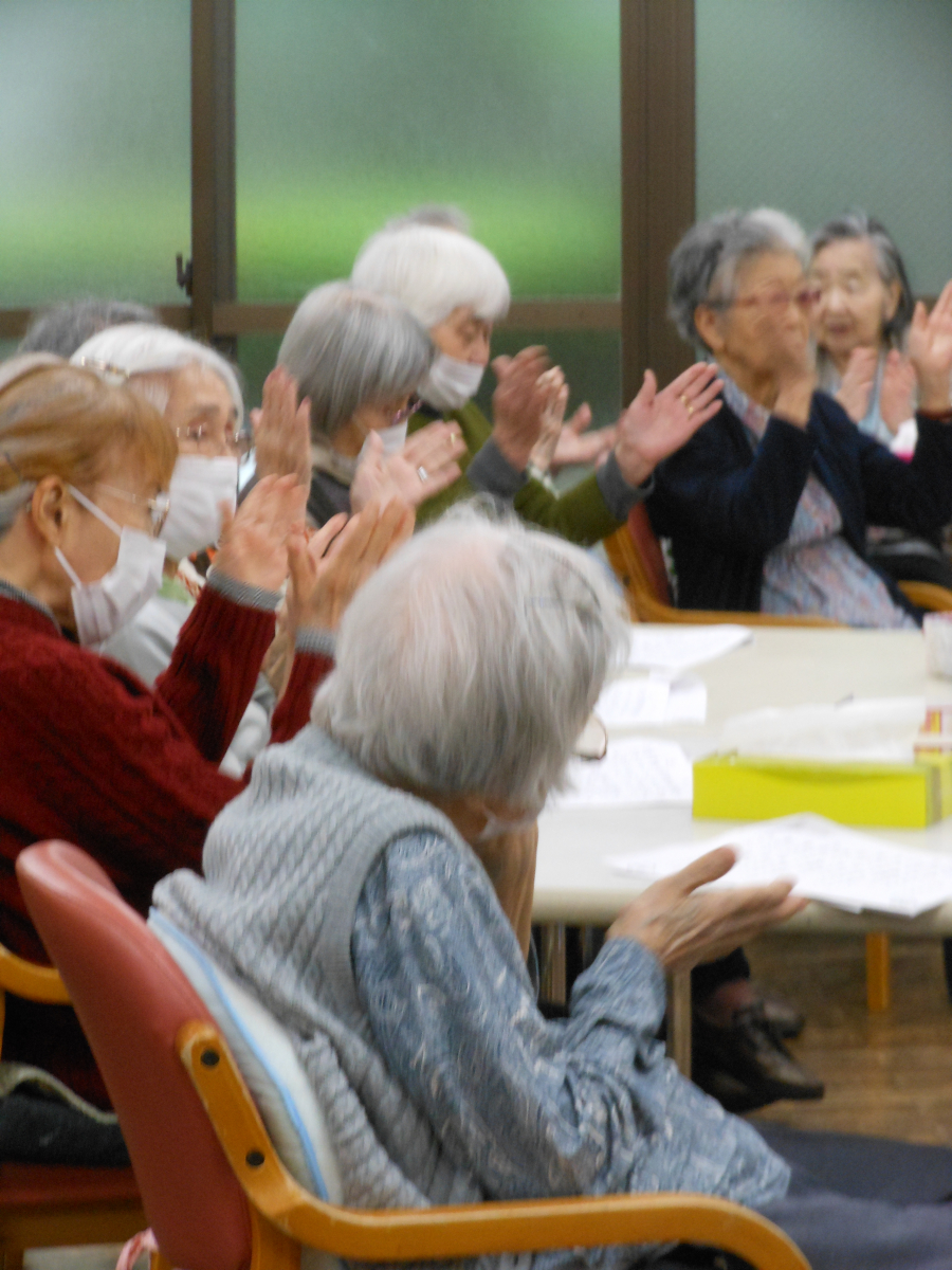 利用者の皆様はお二人の演奏に負けないぐらいの声で歌って楽しまれていたご様子です。