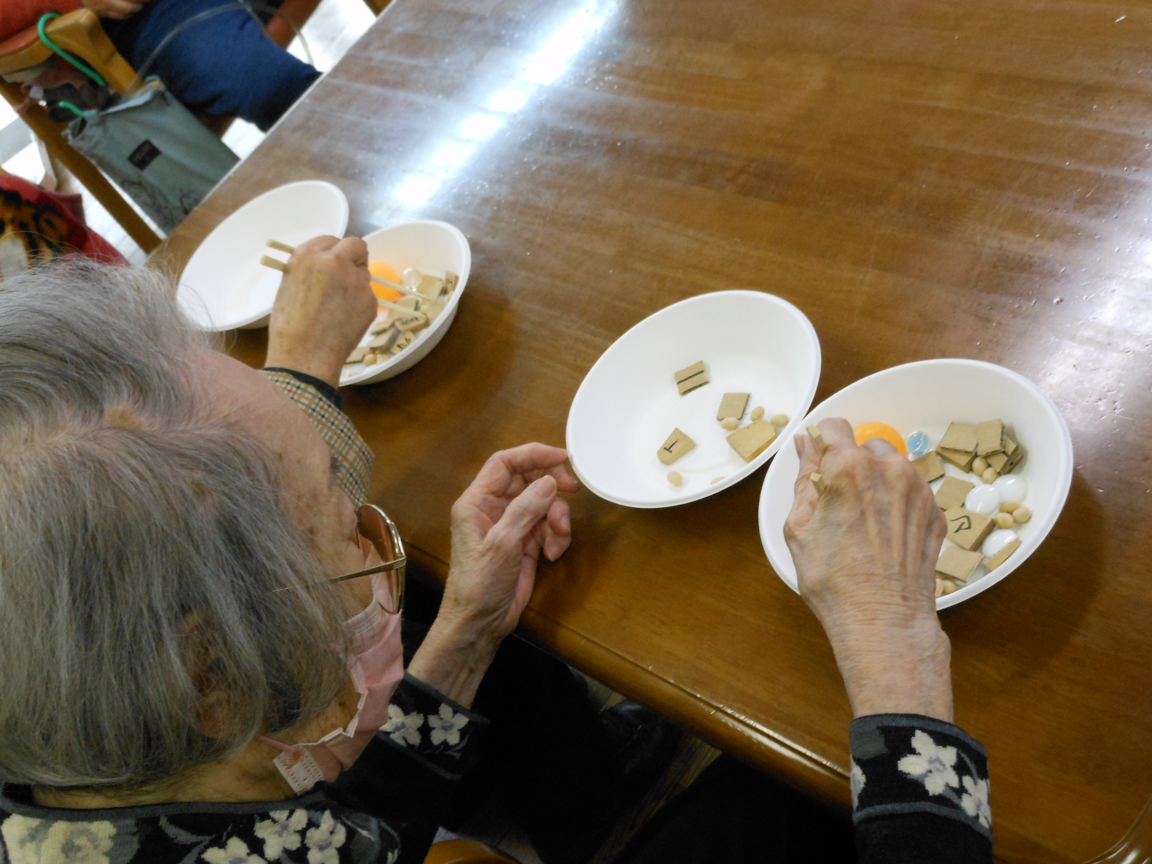 今日はお箸で豆や将棋、碁石、ビー玉等、