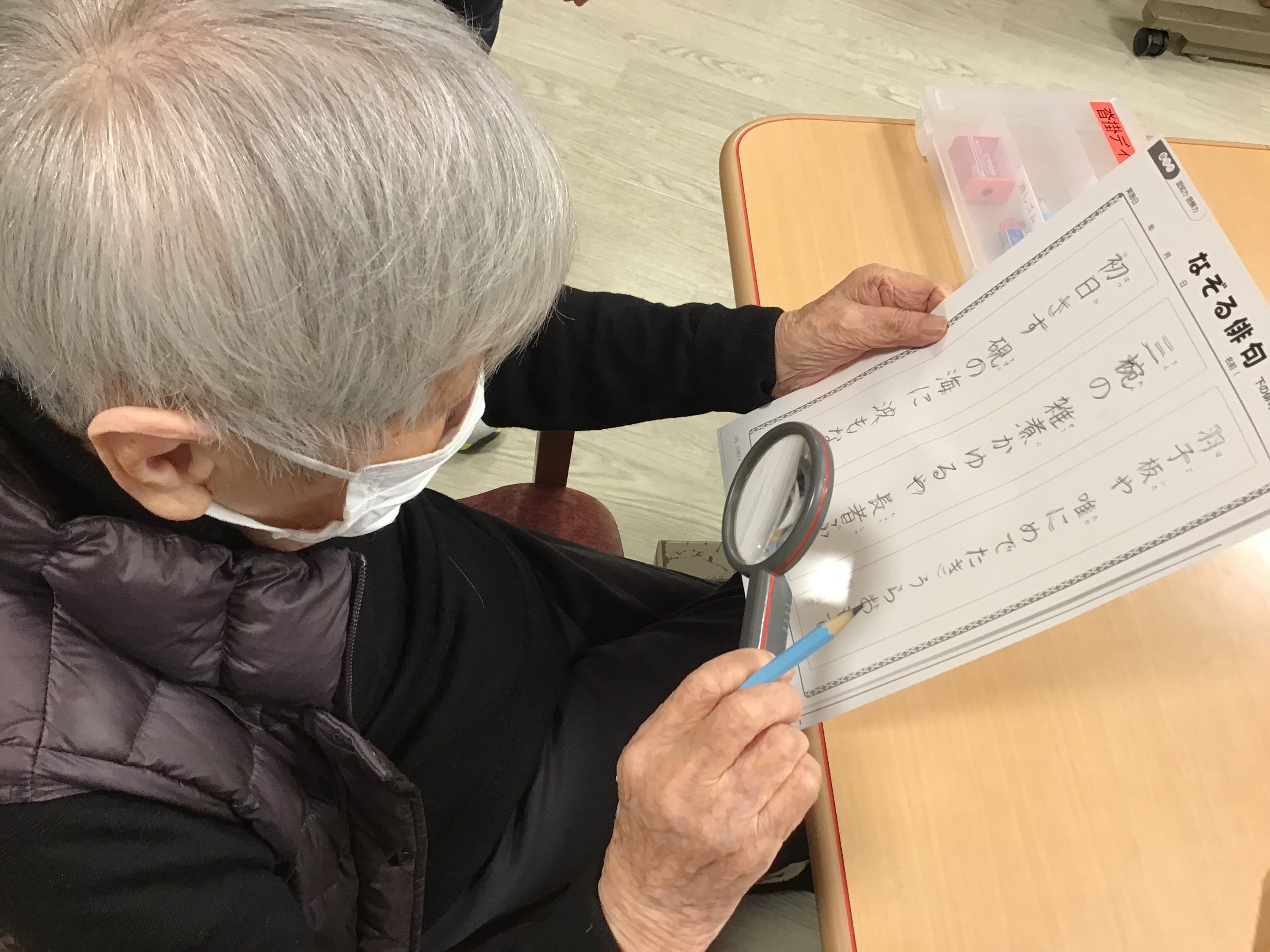 体操までの個別プログラムでH様にはなぞる俳句に挑戦して頂きました。