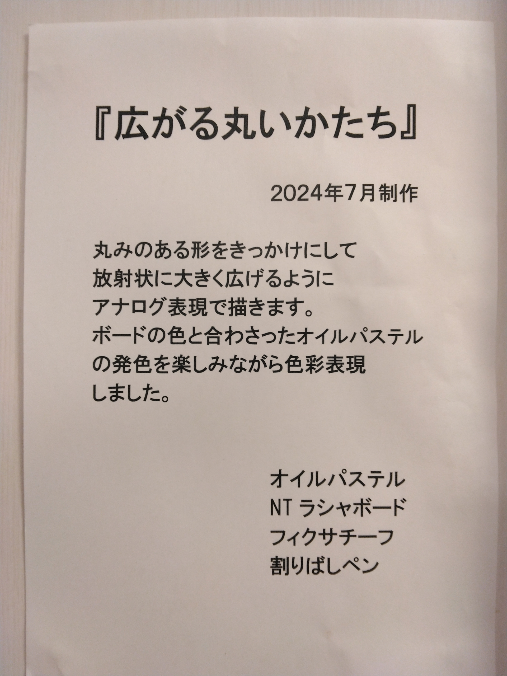 ボードの色と合わさったオイルパステルの発色を楽しみながら色彩表現しました。