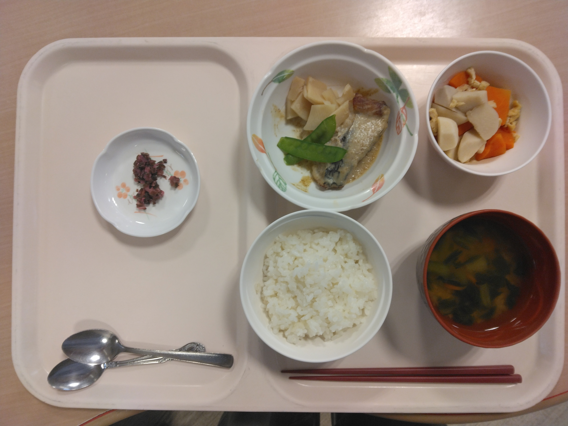 他にはご飯、さわらのごま味噌焼き、里芋と油揚げの煮物、しば漬けといった組み合わせでした。