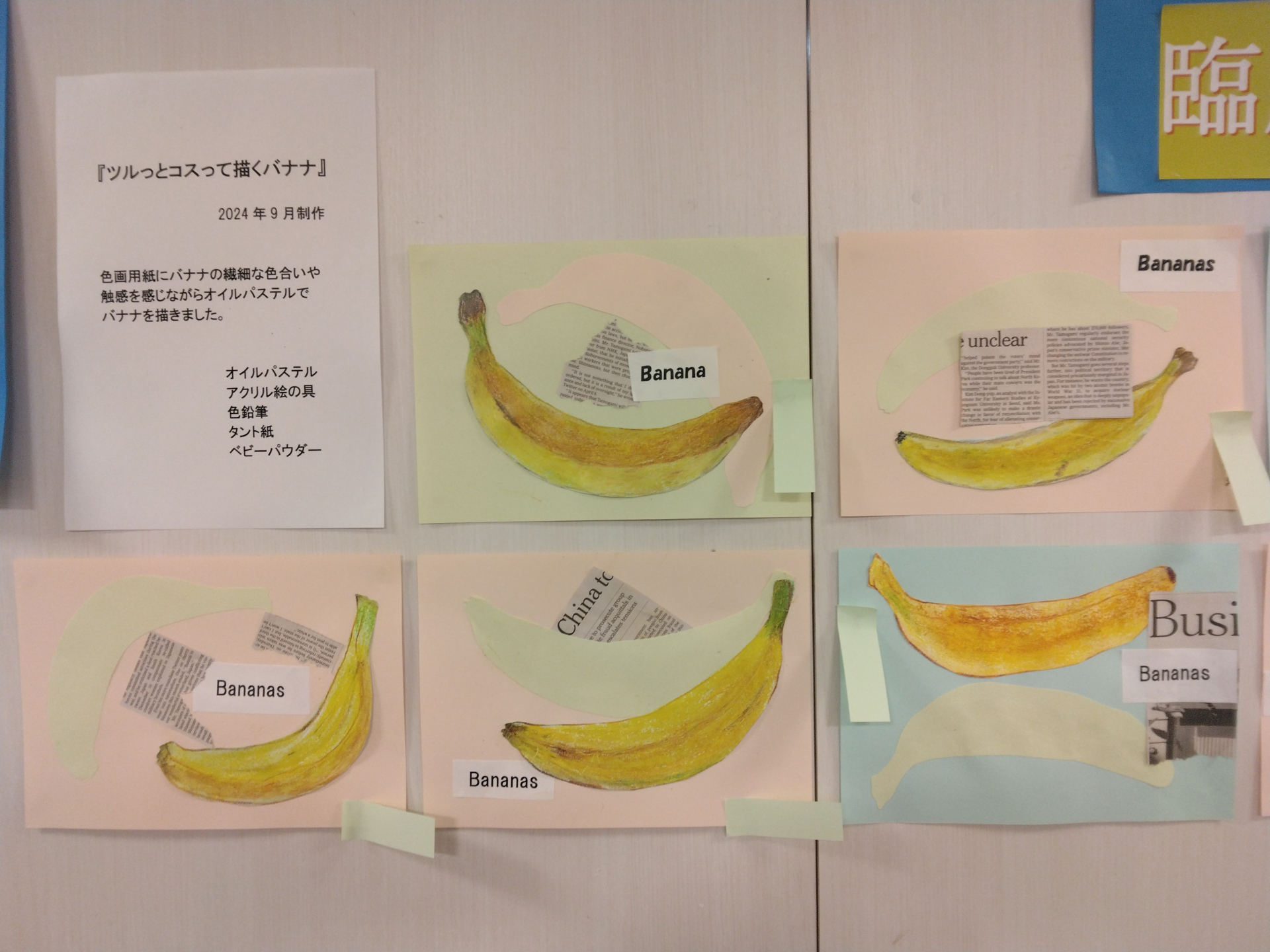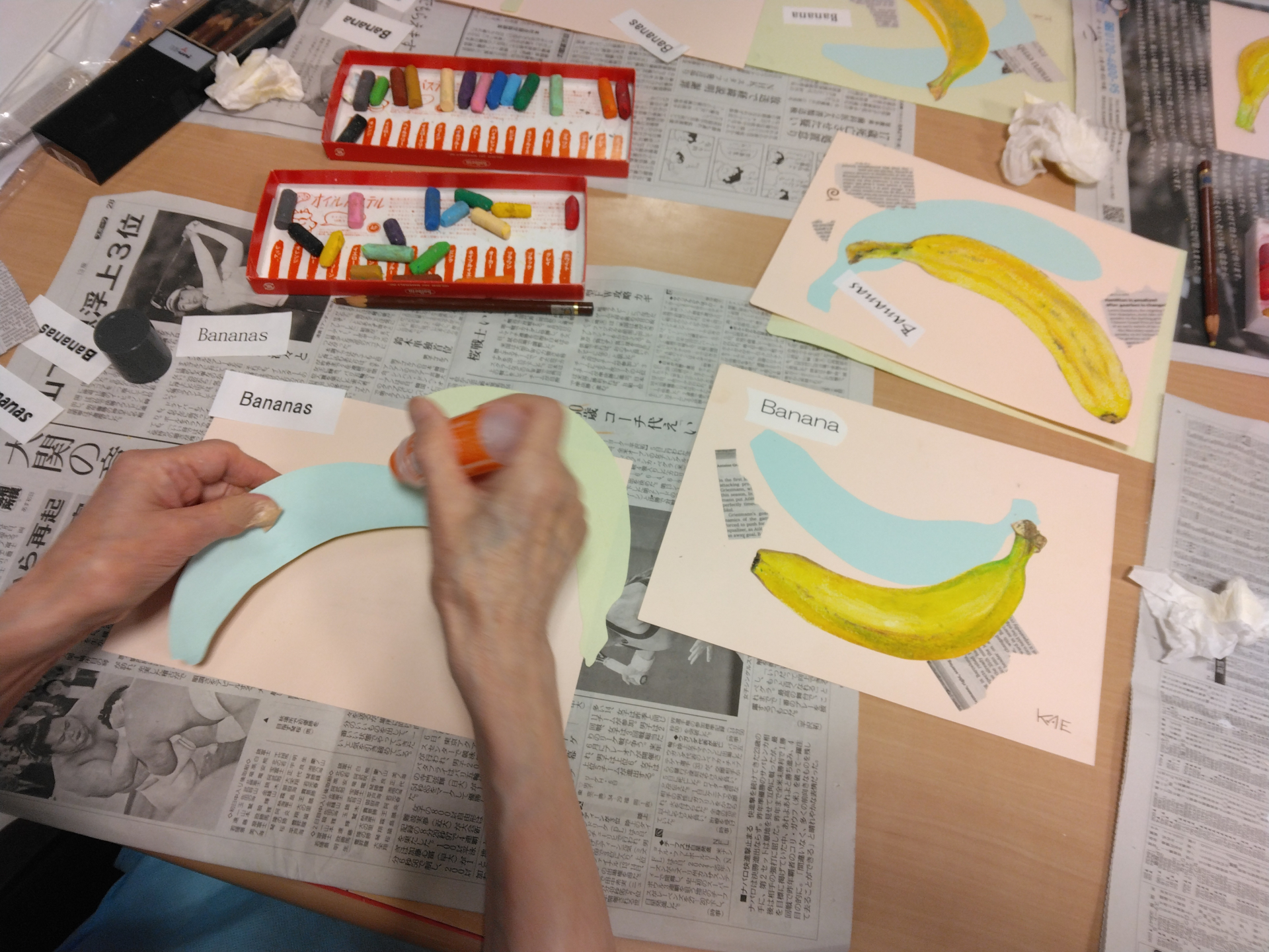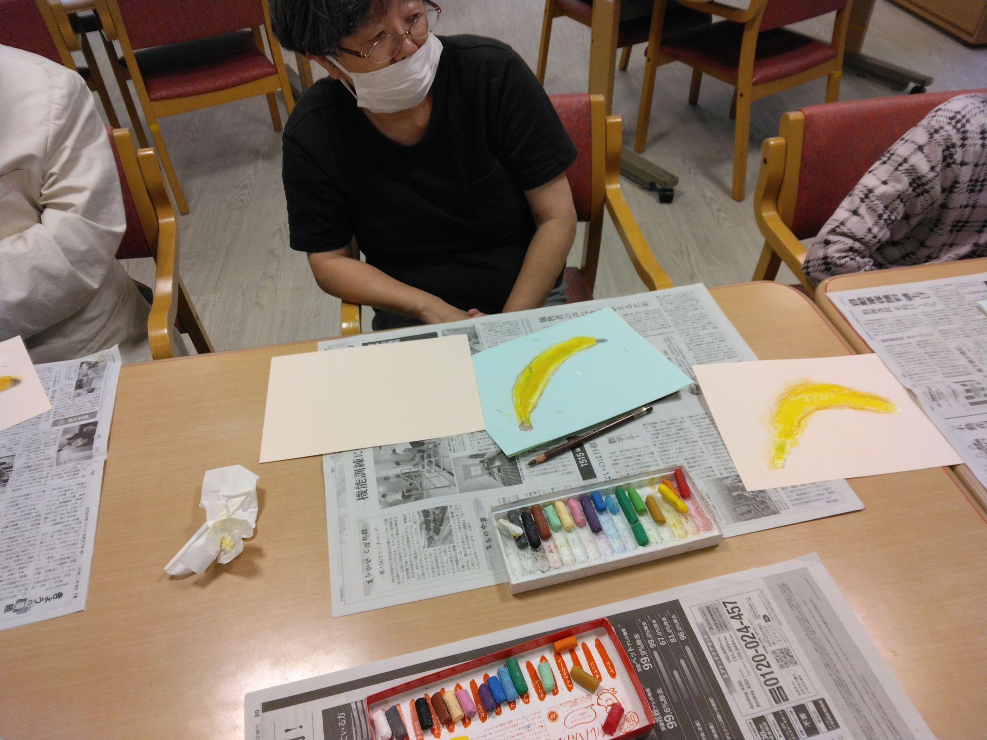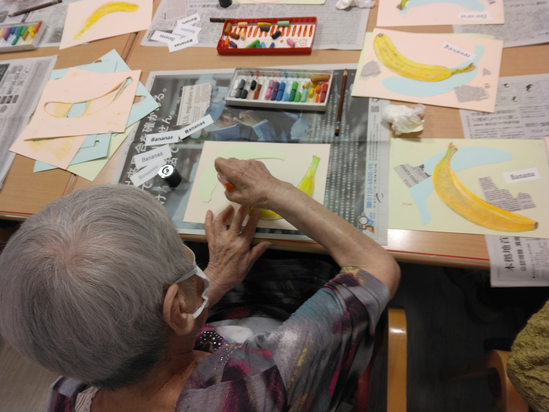 今月の臨床美術教室ではバナナをモチーフにした絵を描いていただきました。