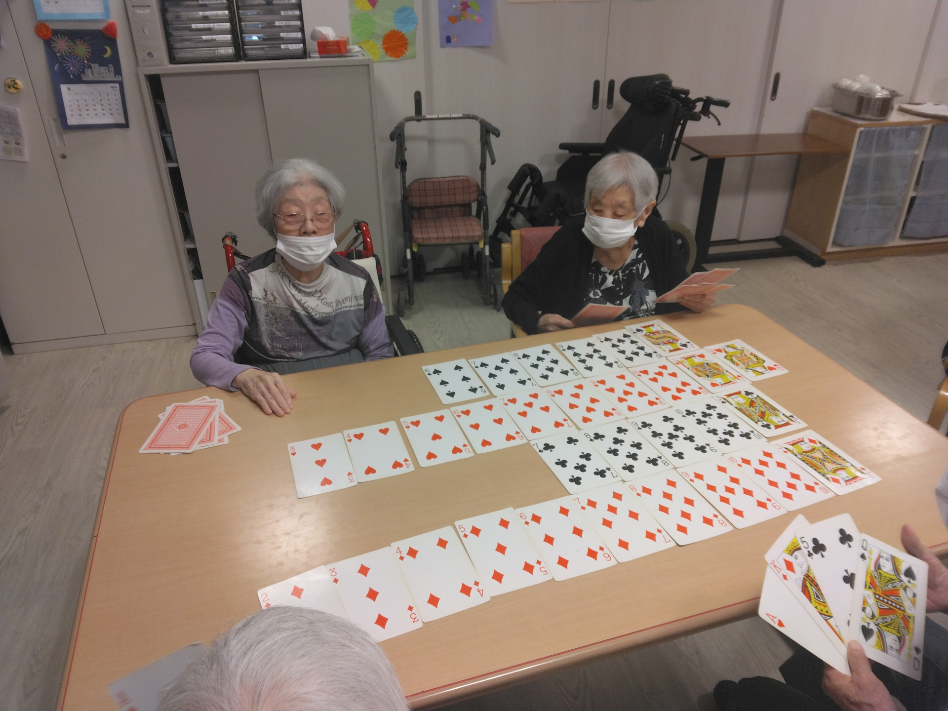 午後のレクリエーションを終え、おやつを召し上がった後、本日はトランプをして過ごされました。