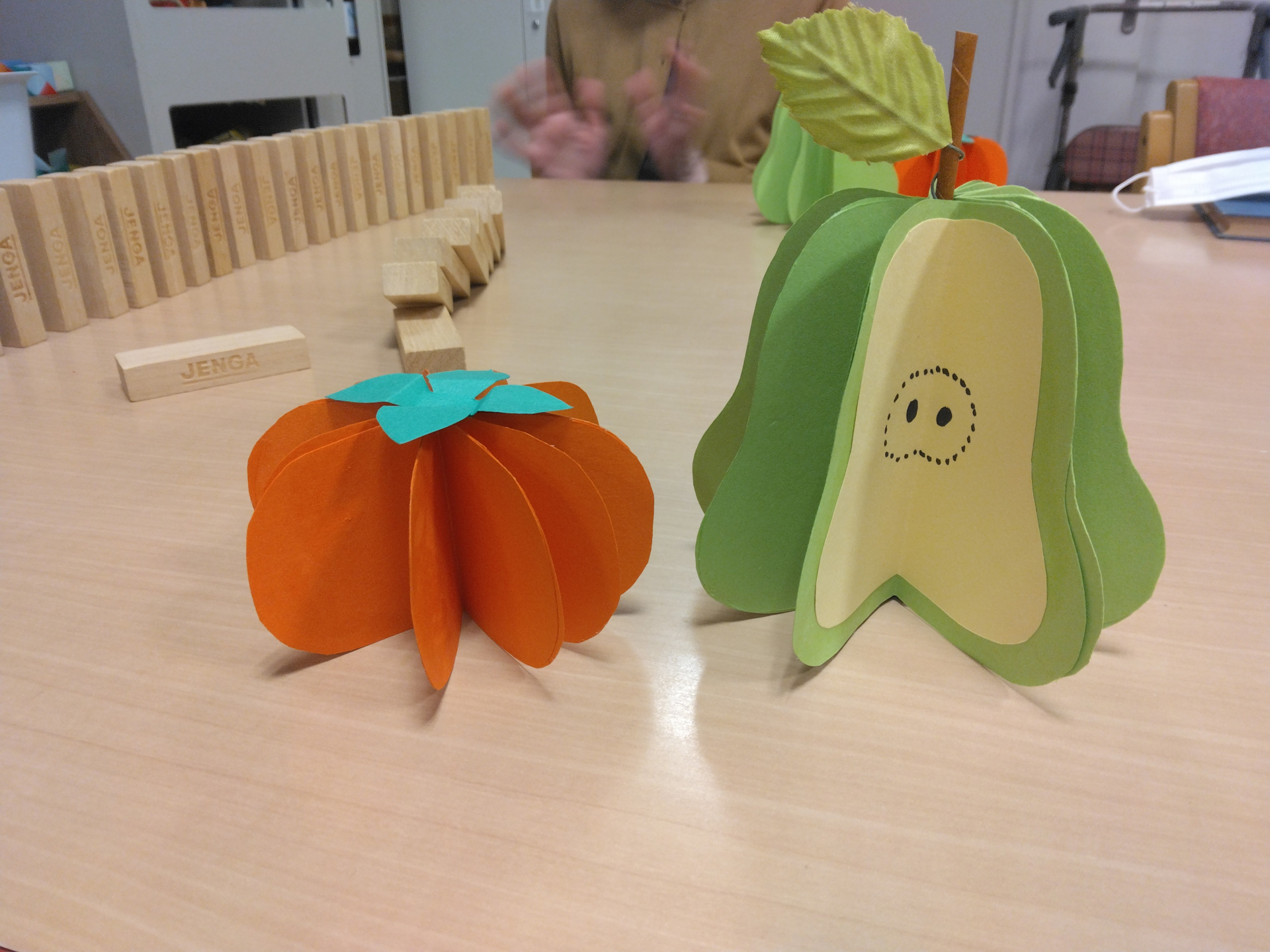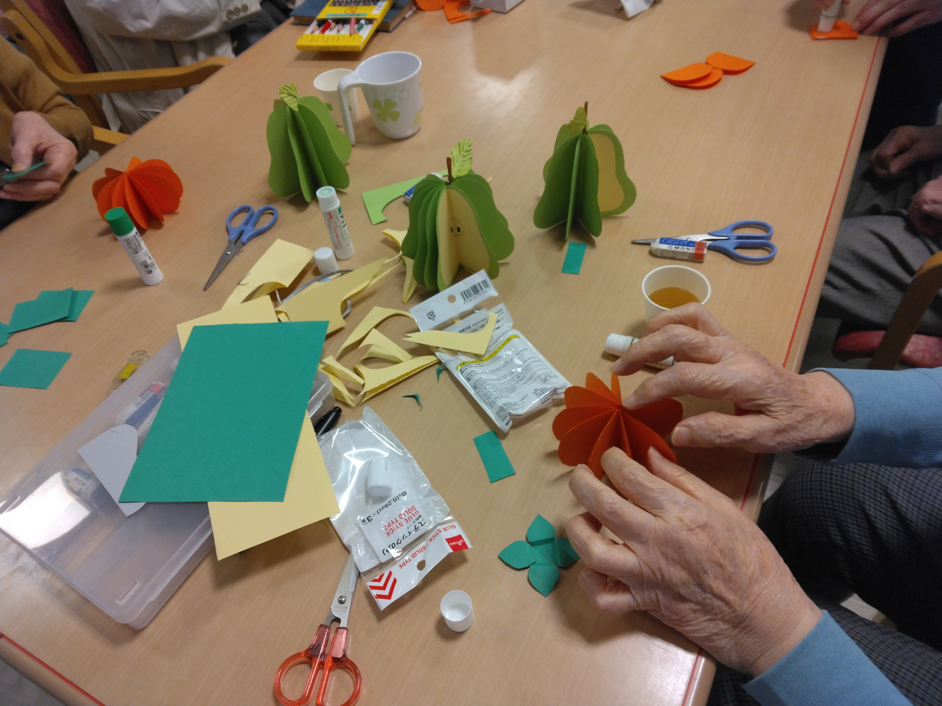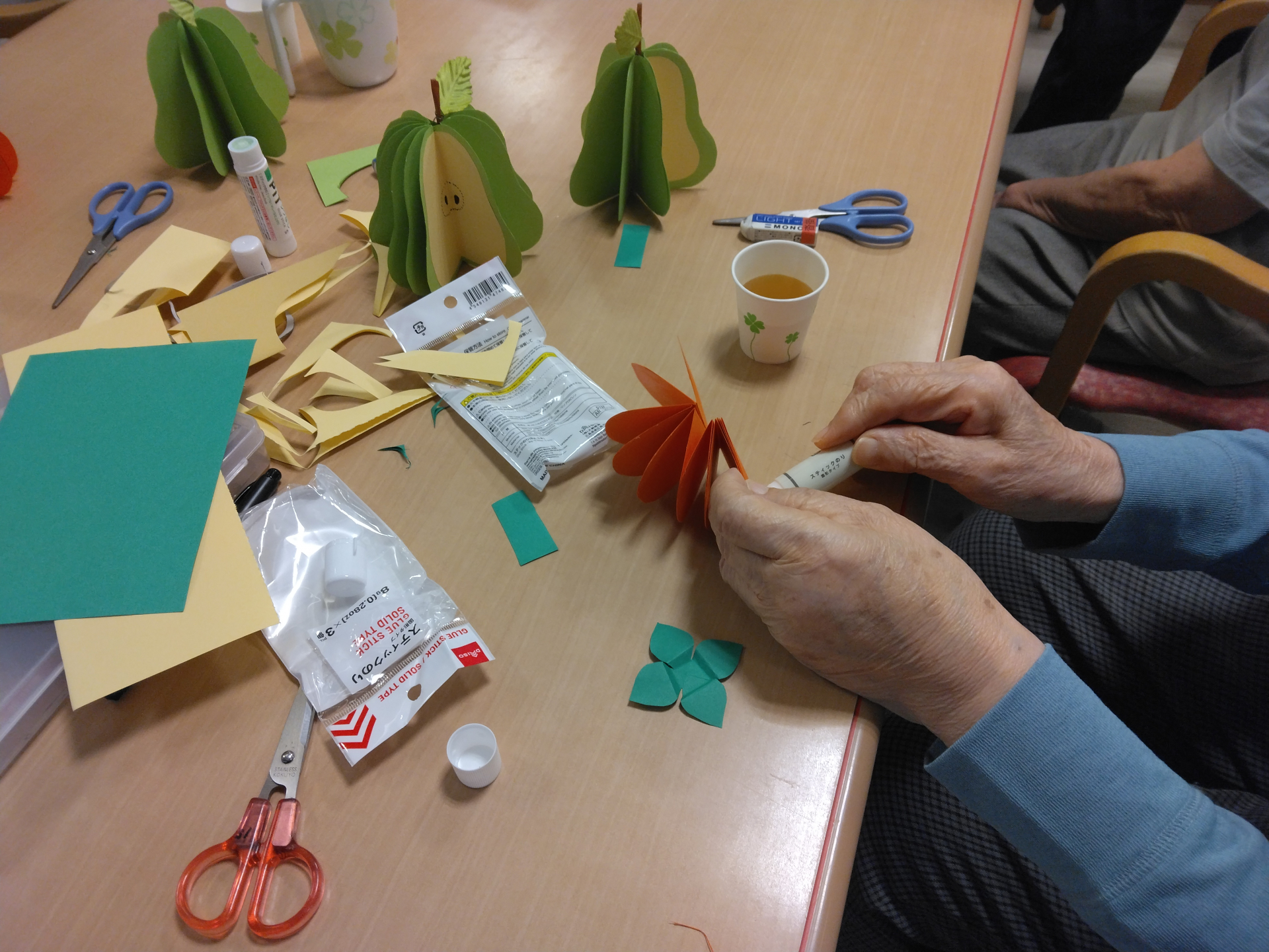 2024.09.28 認知症デイサービス 【沓掛デイ】洋梨と柿のオブジェ【手工芸】 Tweet シェアする 本日の午後のレクリエーション時間は手工芸プログラムでした! 色紙などを使って素敵な洋梨と柿のオブジェを作りましたよ~(^O^)/ ご自宅にぜひお飾りくださいね!☆彡 (沓掛デイ・岩永) 前の記事 2024.09.30 認知症デイサービス 【沓掛デイ】今月のヘアカット 次の記事 2024.09.27 認知症デイサービス 【沓掛デイ】10月カレンダー作り【手工芸】 一覧へ戻る