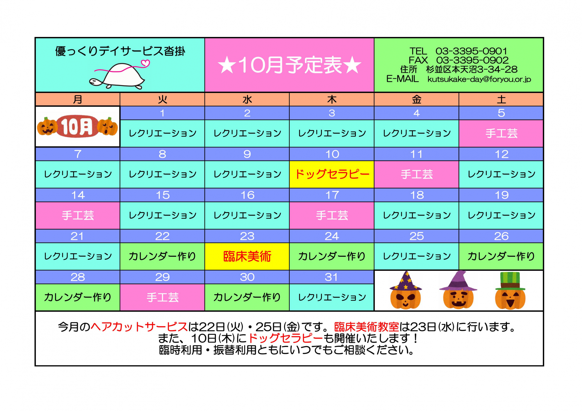 10月も皆さまのご来所を職員一同心よりお待ちしております。