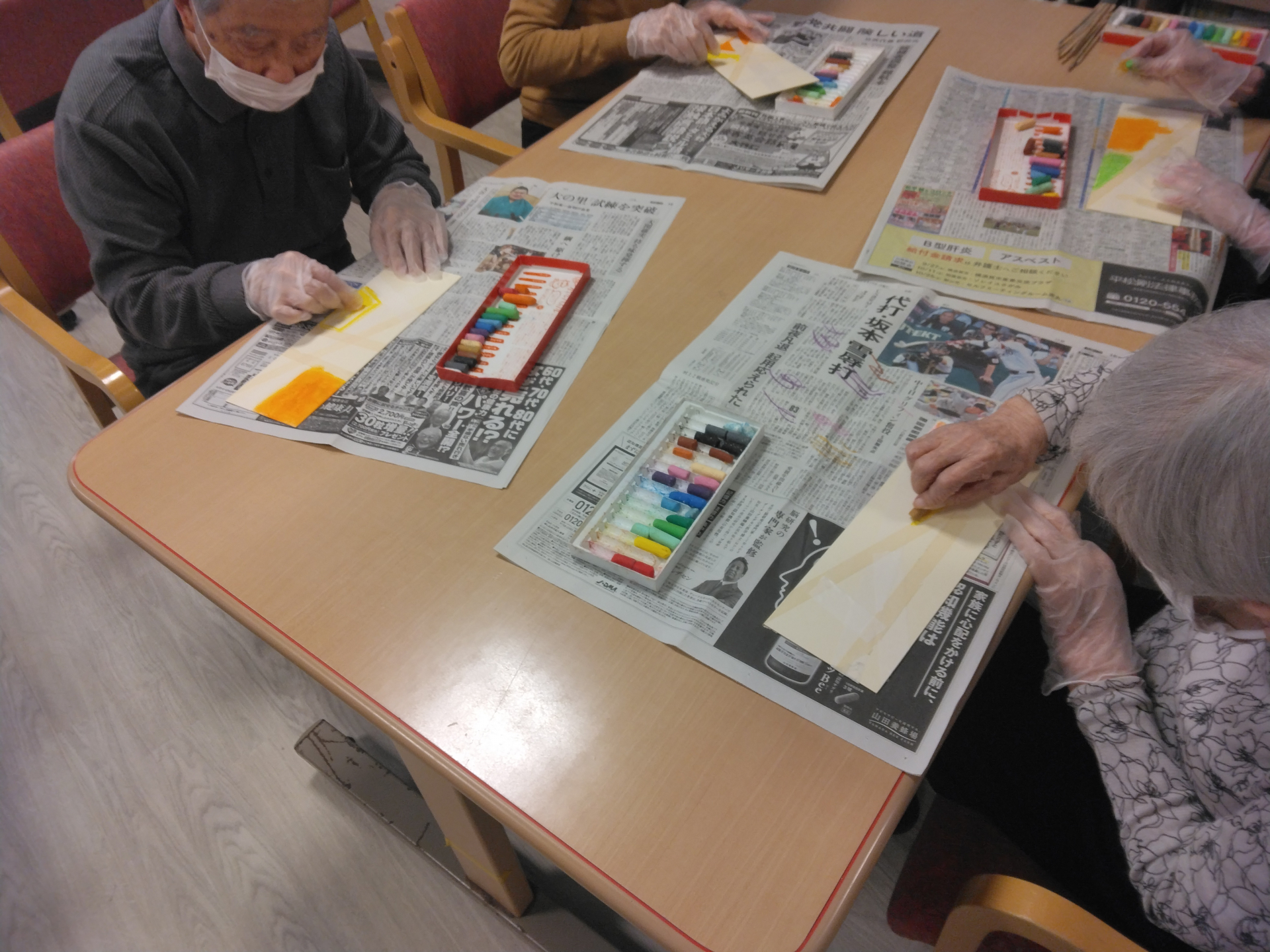 出来上がった作品はしばらくデイのフロアに飾らせていただきます。