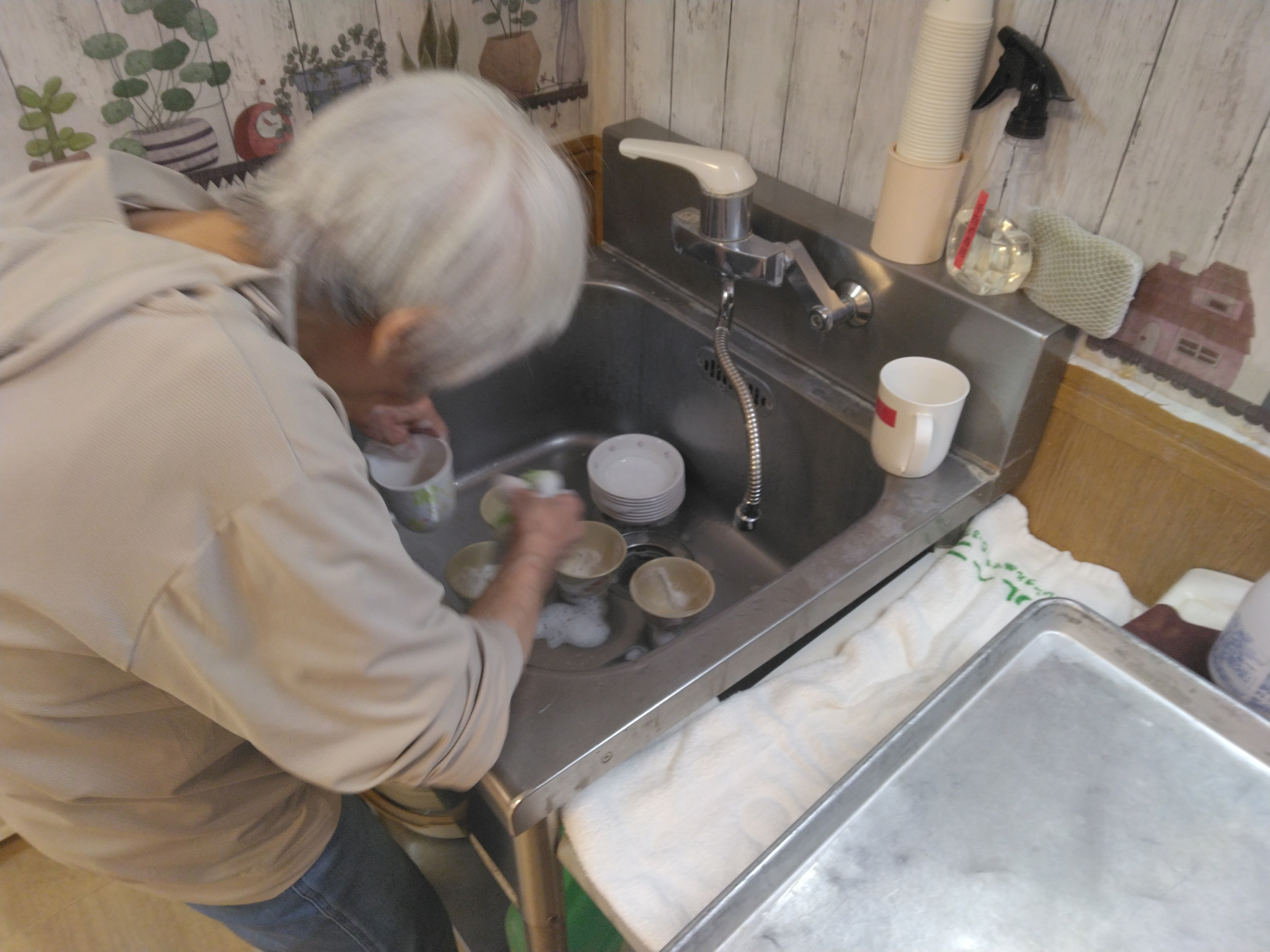 今日はMさまにコップ洗いのお手伝いをお願いいたしました。
