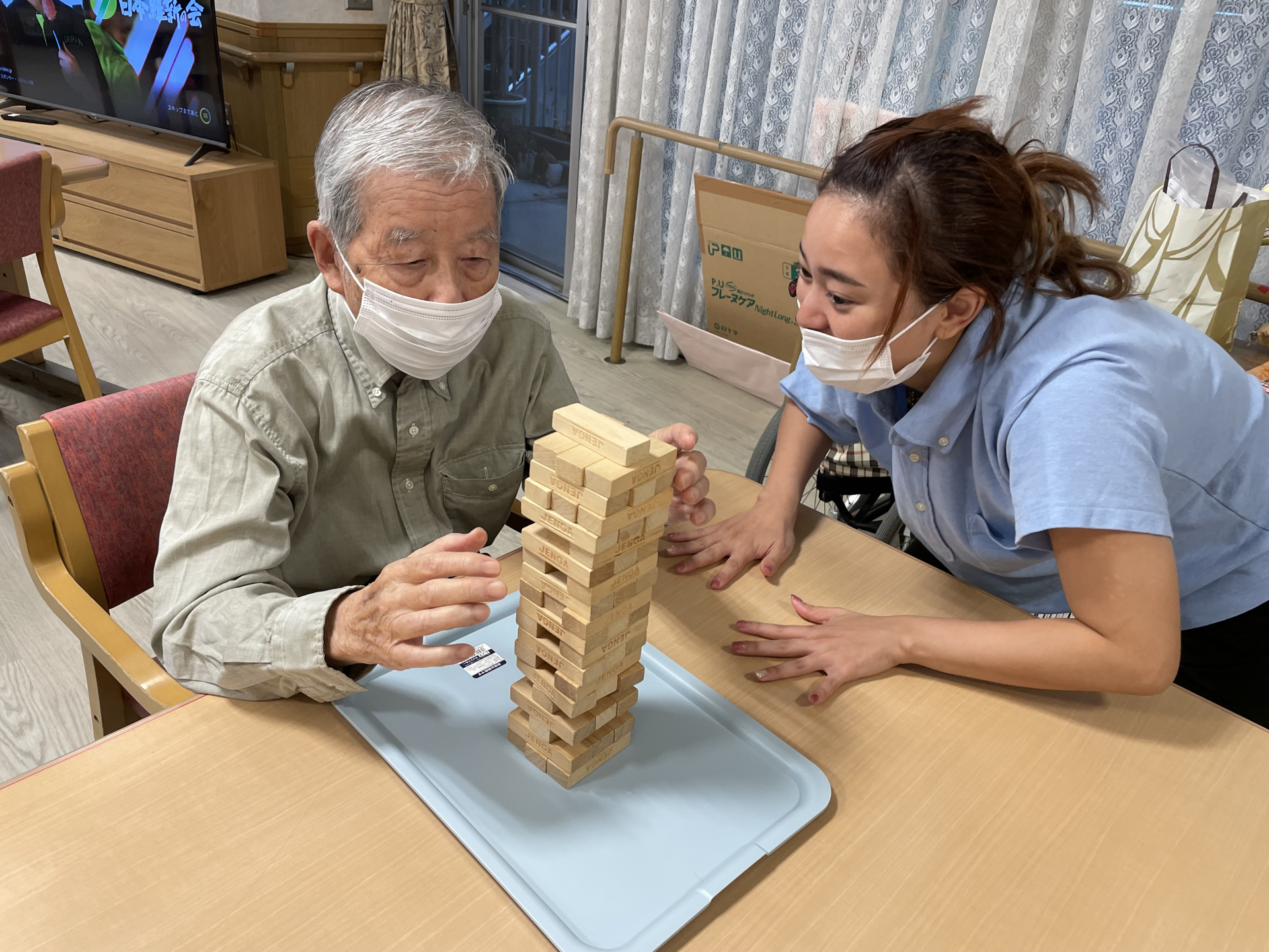 攻めの一手で勝負に出るH様。他の方も手慣れた手つきでジェンガを抜いていきます。