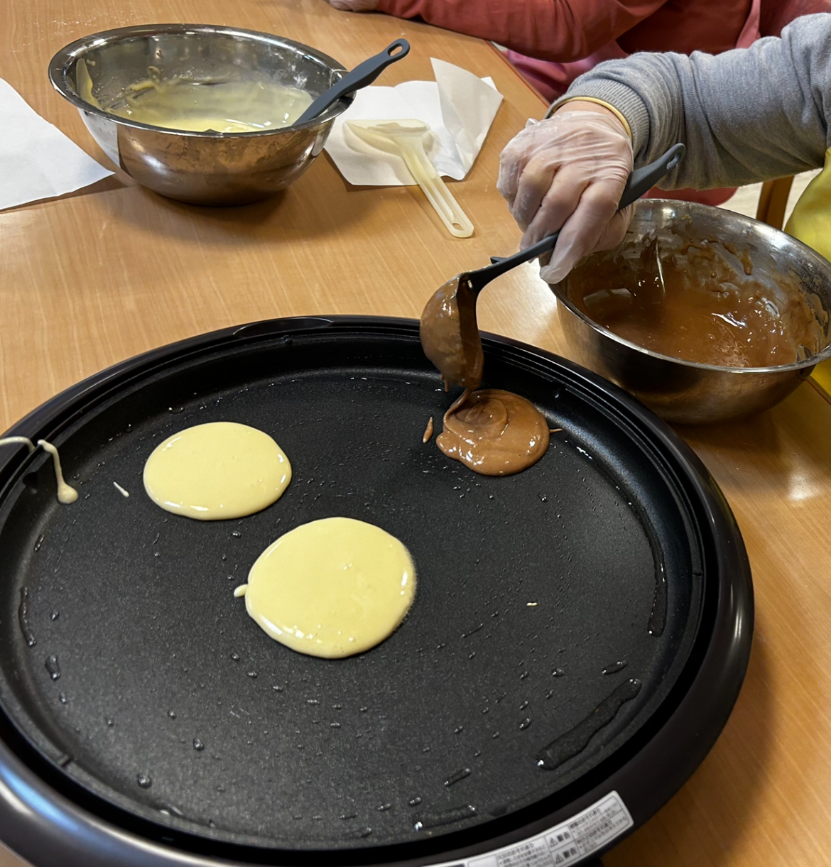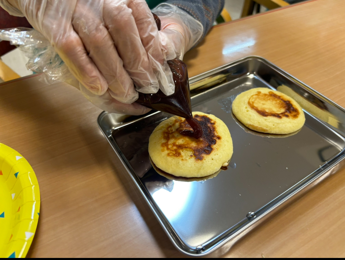 表面にぷつぷつと小さい穴が空いてきたら裏に返します。粗熱が取れたら好きな量のあんこを挟んで完成です!!