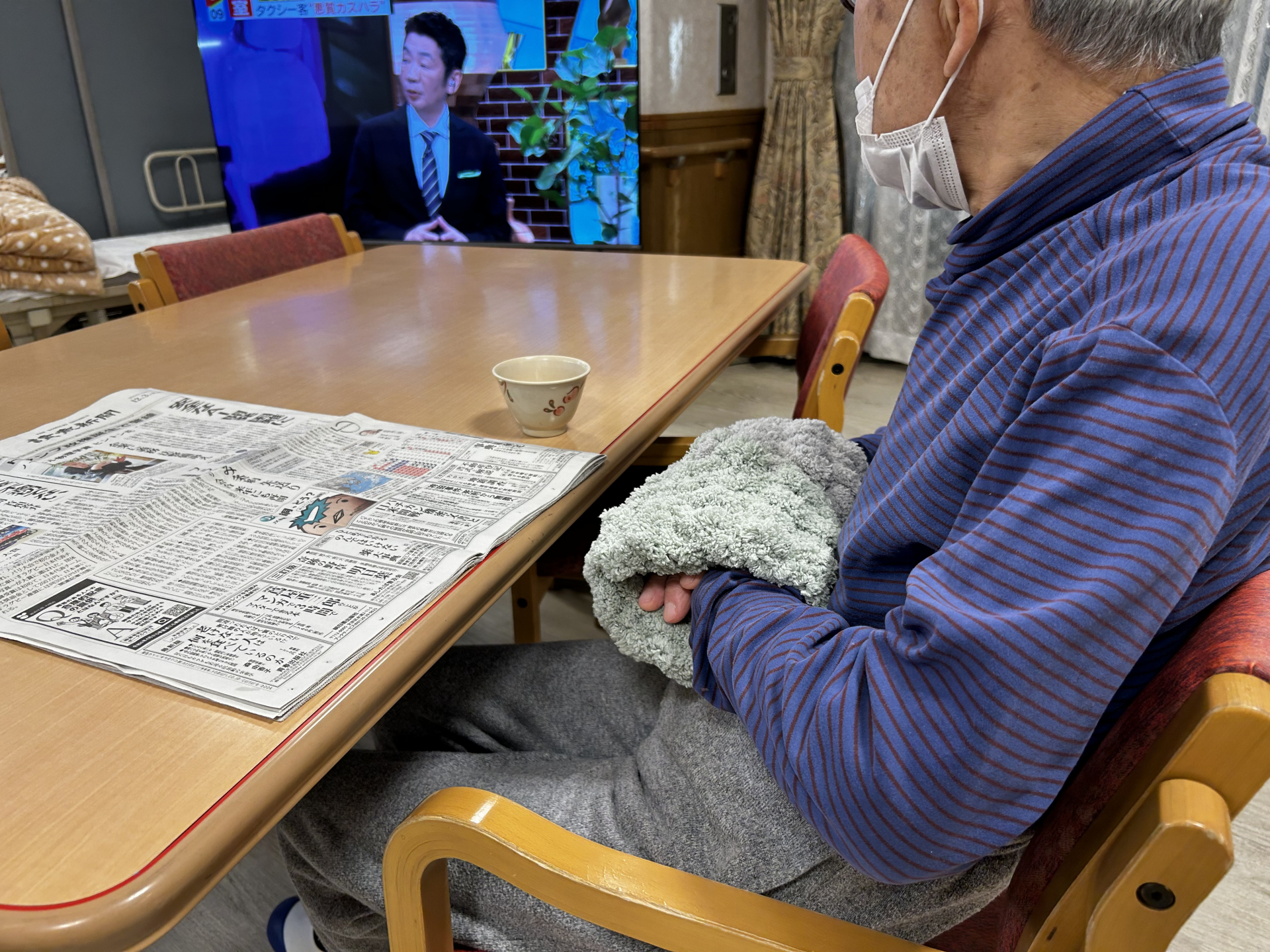 I様はテレビや新聞を読みながら手を温めており「これはね、すごく温まって眠たくなるほど気持ちがいいんだ!」とお気に召されていました。