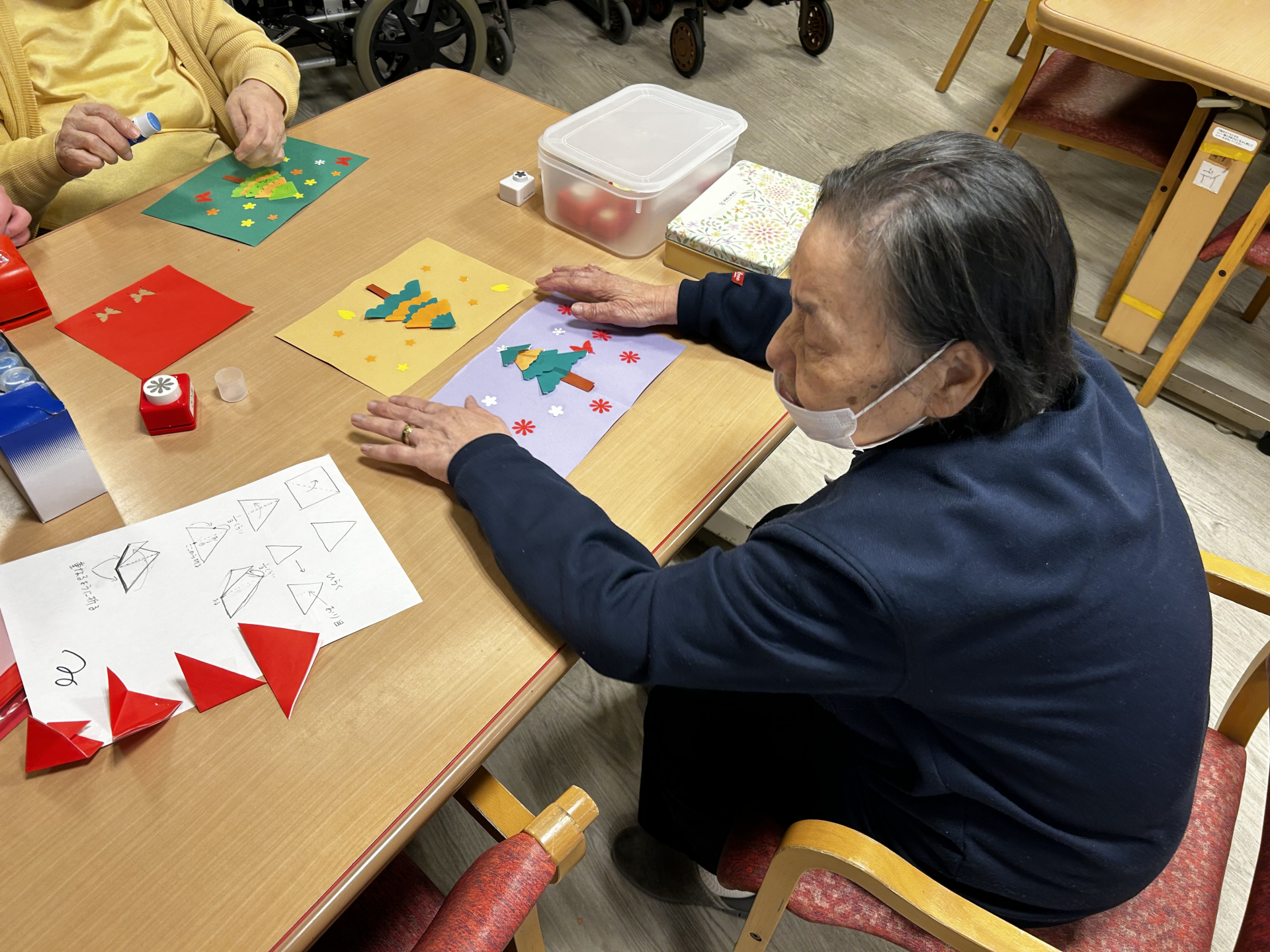K職員が折り方を調べて手書きで分かりやすく書いてくれたので、皆さまもうまく折り紙を折ることができました!