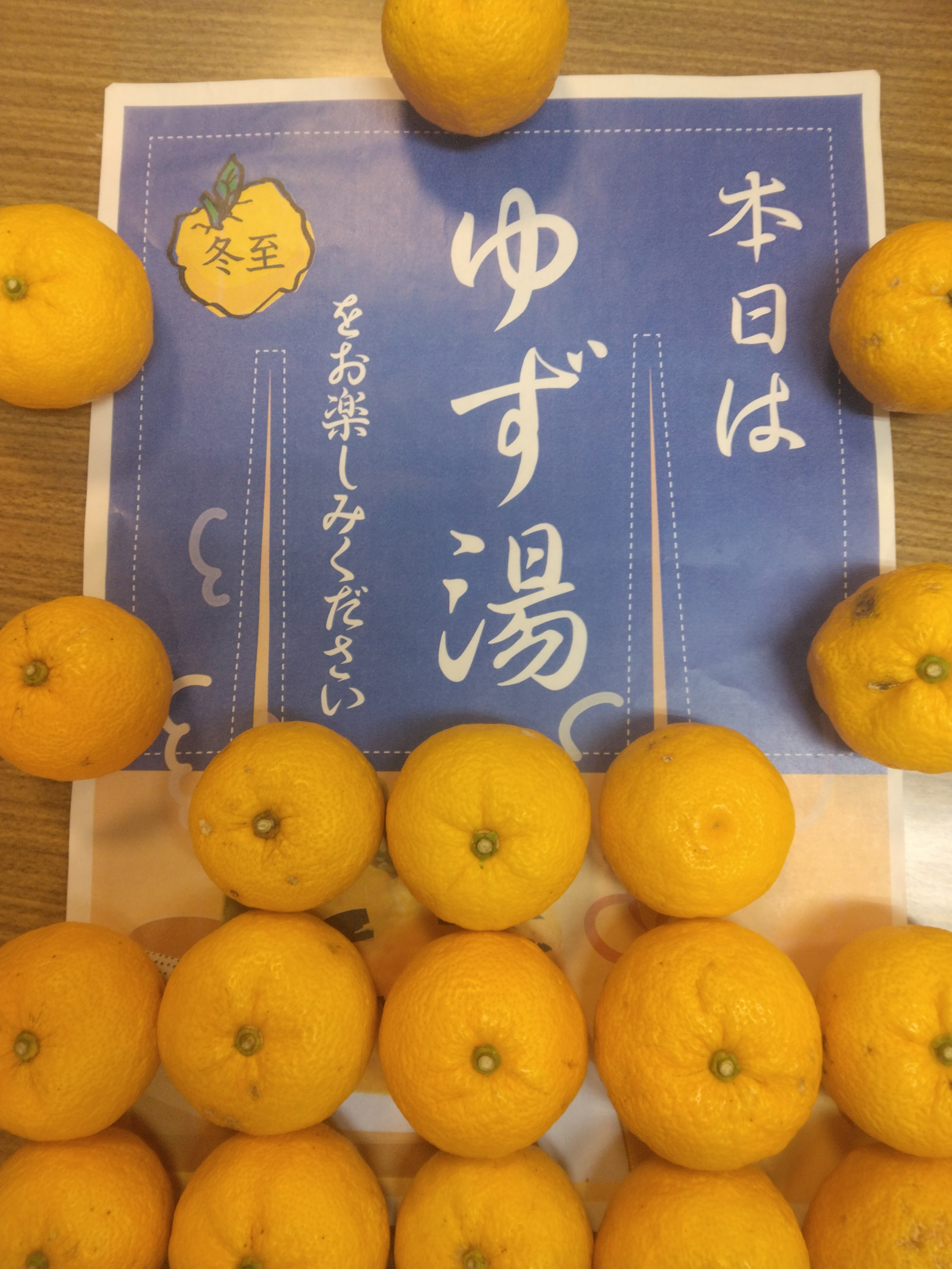 現代ではゆずの持つ様々な効能が明らかになっていますが、元々は江戸時代に銭湯で客寄せのためにゆずを入れたのが始まりとされており、冬至と湯治、ゆずと融通の語呂合わせからきているそうです笑