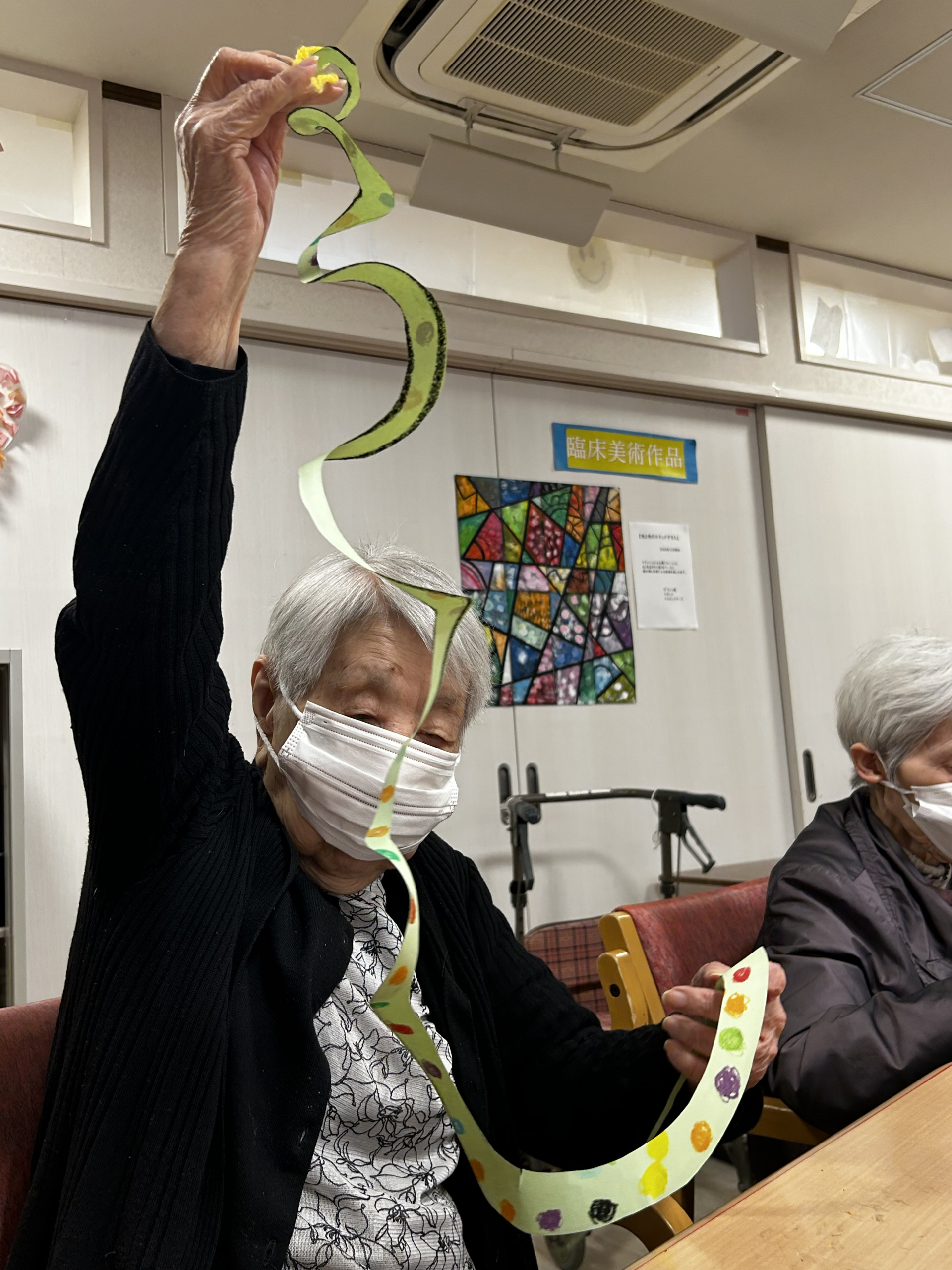 今年は巳年ですね!今回のレクでは干支にちなんだ手工芸に挑戦して頂きました。