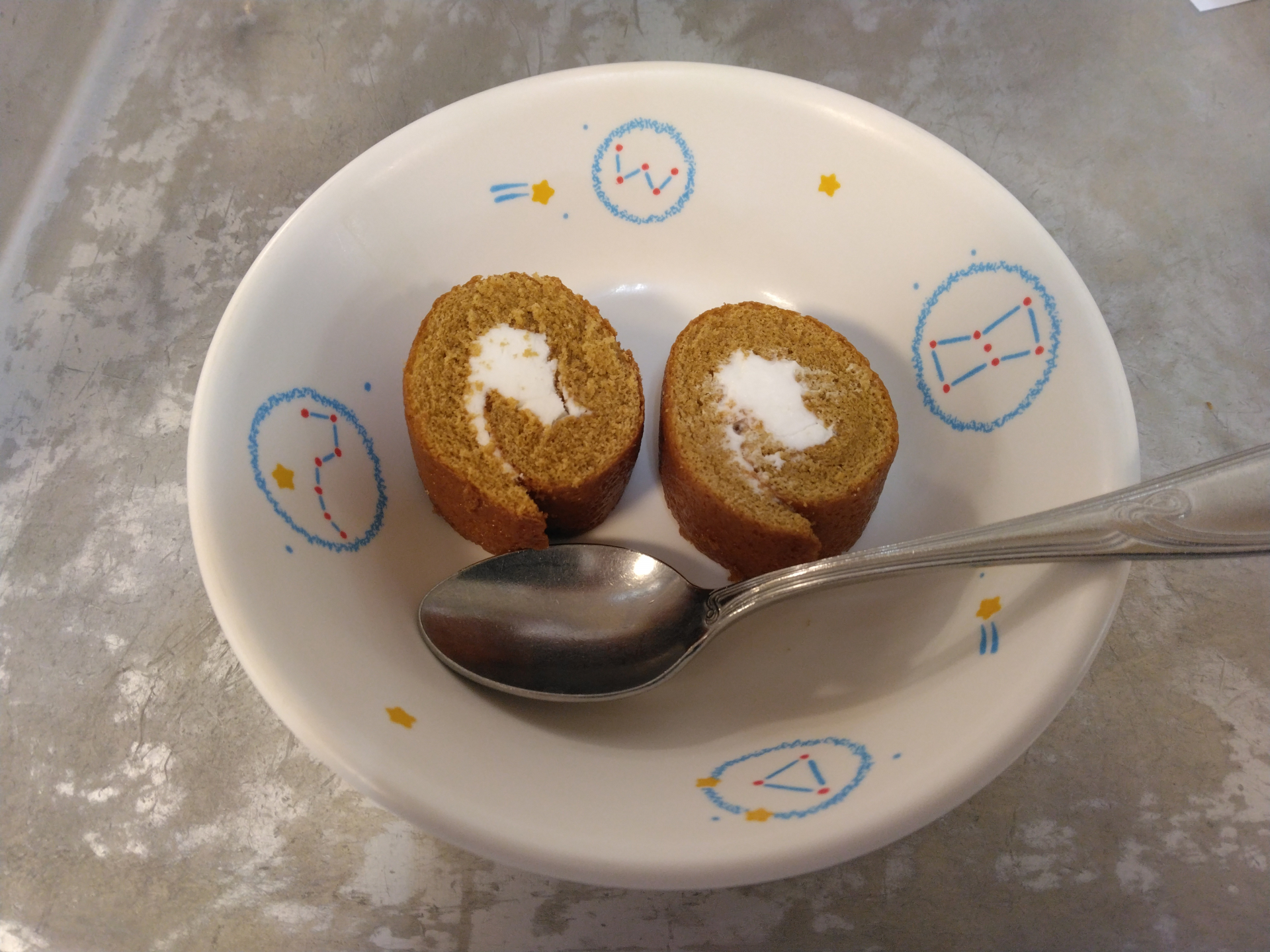 本日は3時のおやつに黒糖ロールケーキをお出しいたしました!