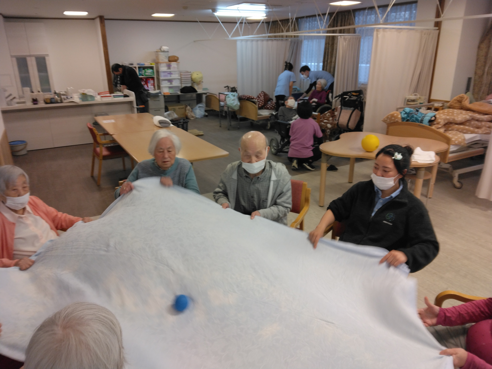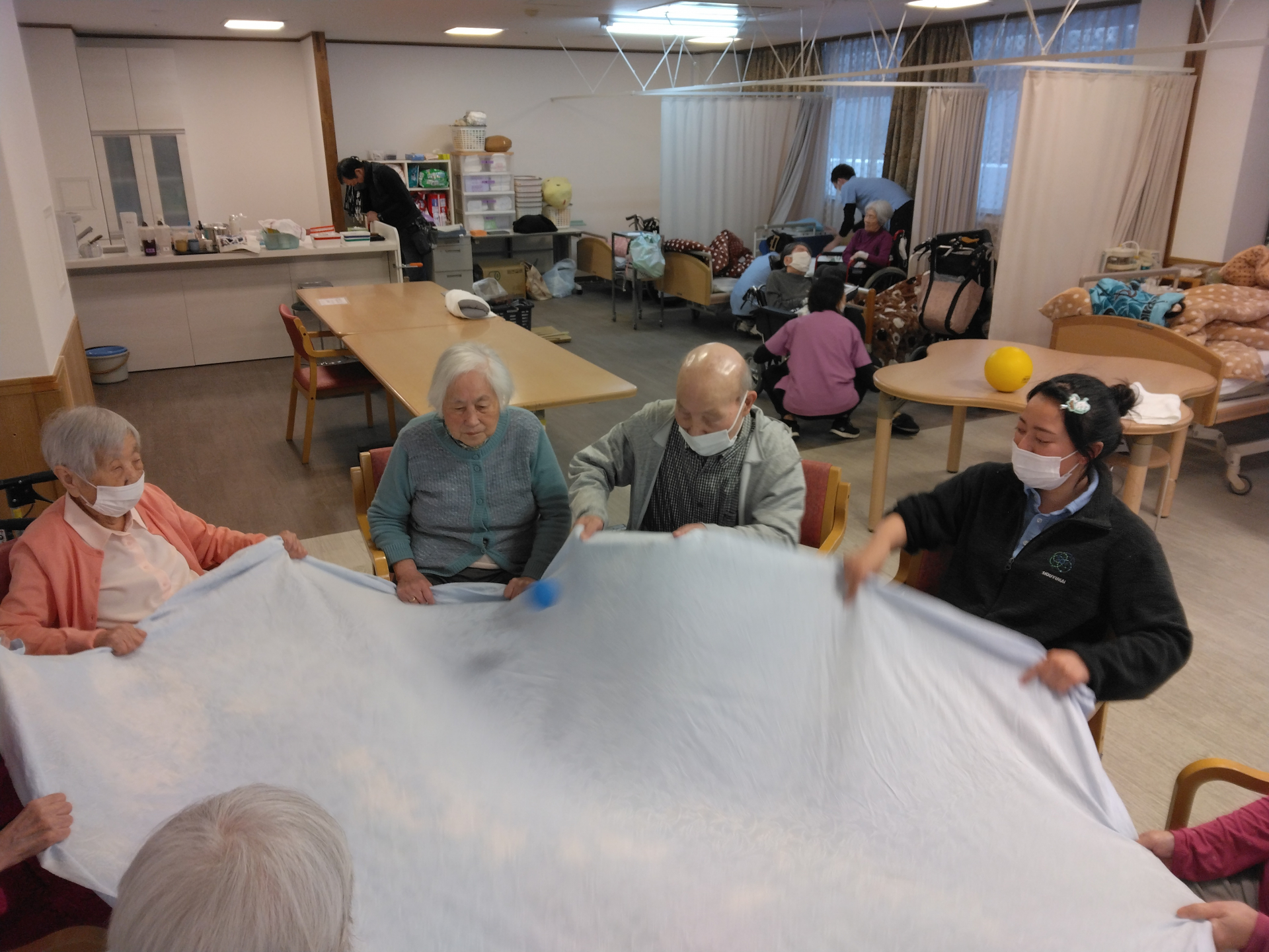 本日は午後のレクリエーションの時間にシーツバレーを行いました!