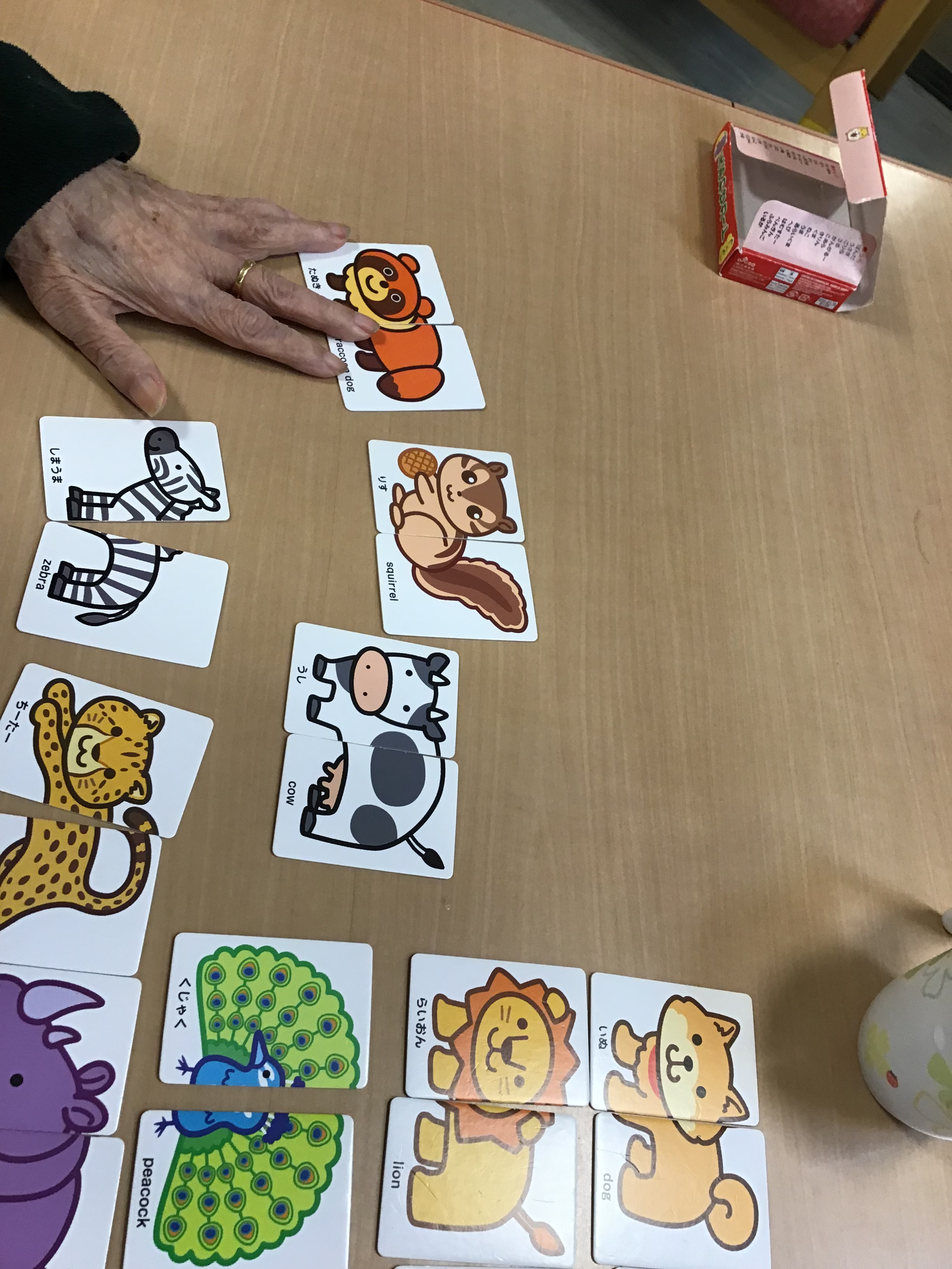 2023.12.19 活動報告 【沓掛デイ】絵合わせカード Tweet シェアする ご自身からお話をされることが少ないH様。 動物の絵合わせに本日はチャレンジされました。 ネコちゃんを飼われているので真っ先に!!そろえることができました。 前の記事 2023.12.20 活動報告 【沓掛デイ】魚釣りゲーム 次の記事 2023.12.19 活動報告 【沓掛デイ】役割支援 エプロンたたみ 一覧へ戻る