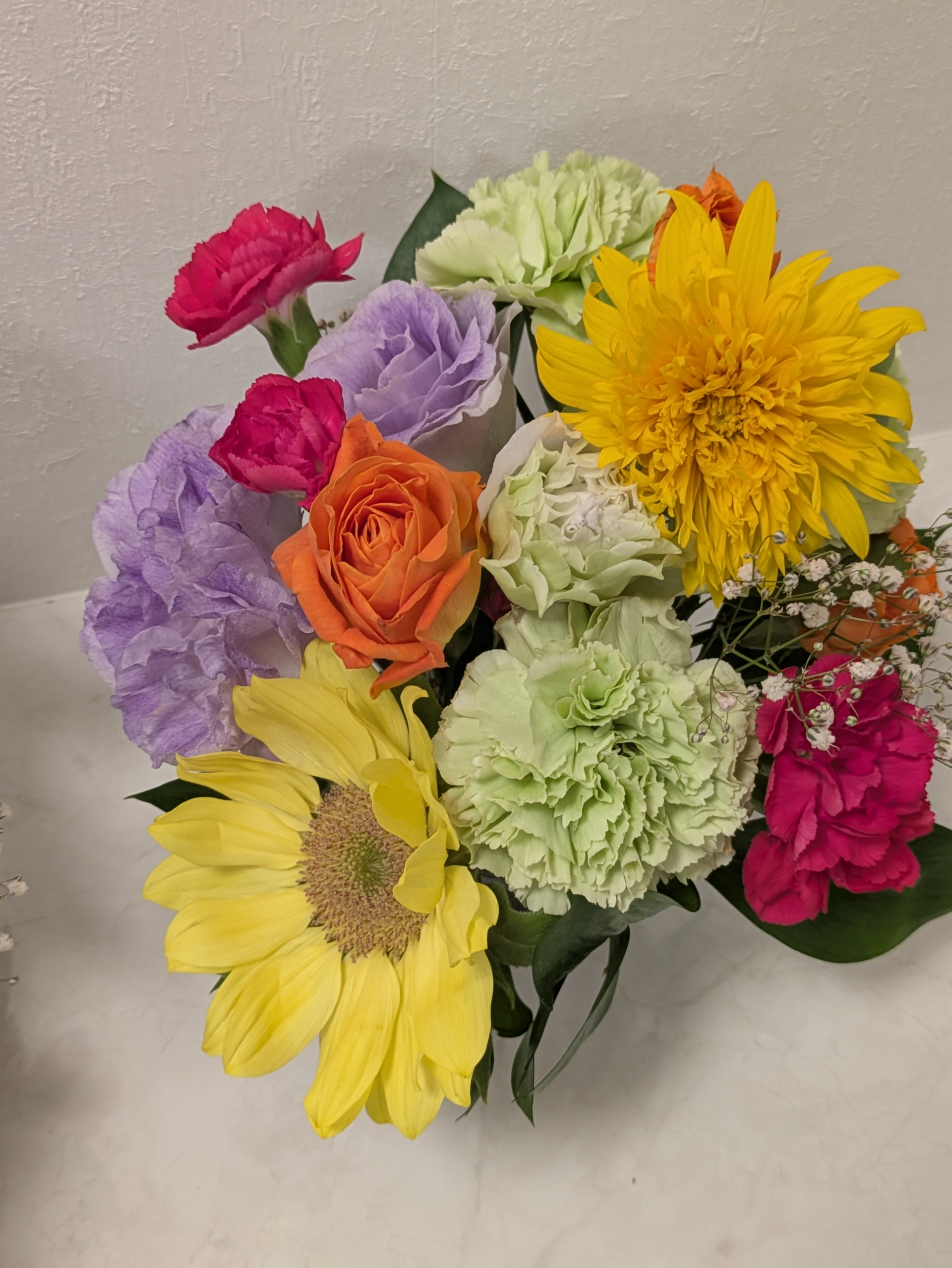 今回は2種類の向日葵と、トルコキキョウを使ったアレンジメントを楽しみましたー(^^♪