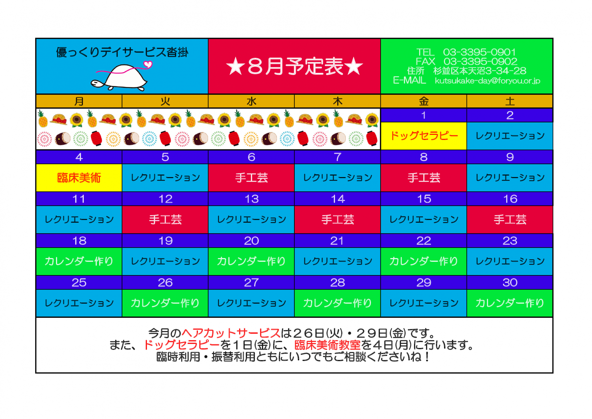 それでは、8月も皆さまのご来所を職員一同心よりお待ちしております!!