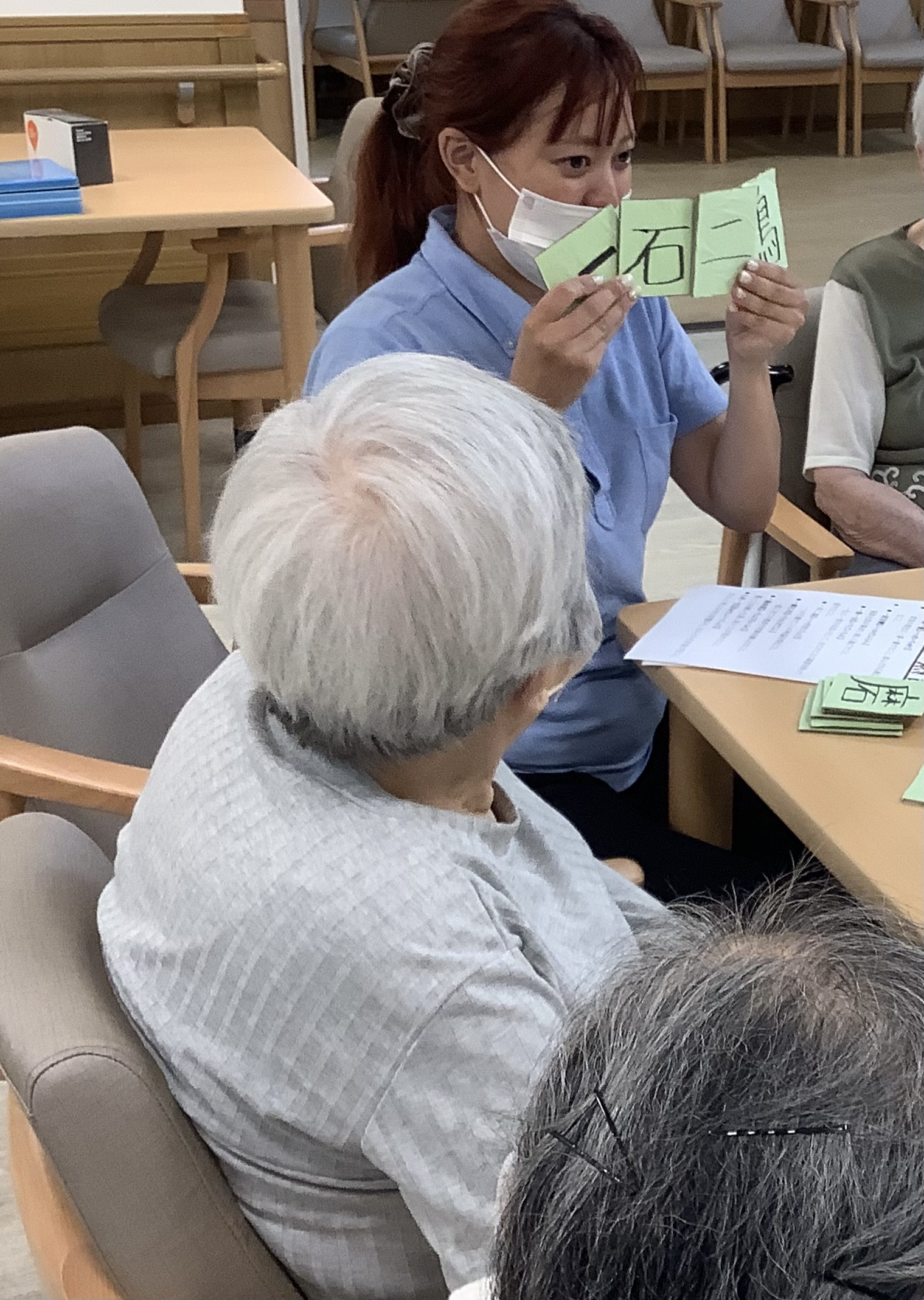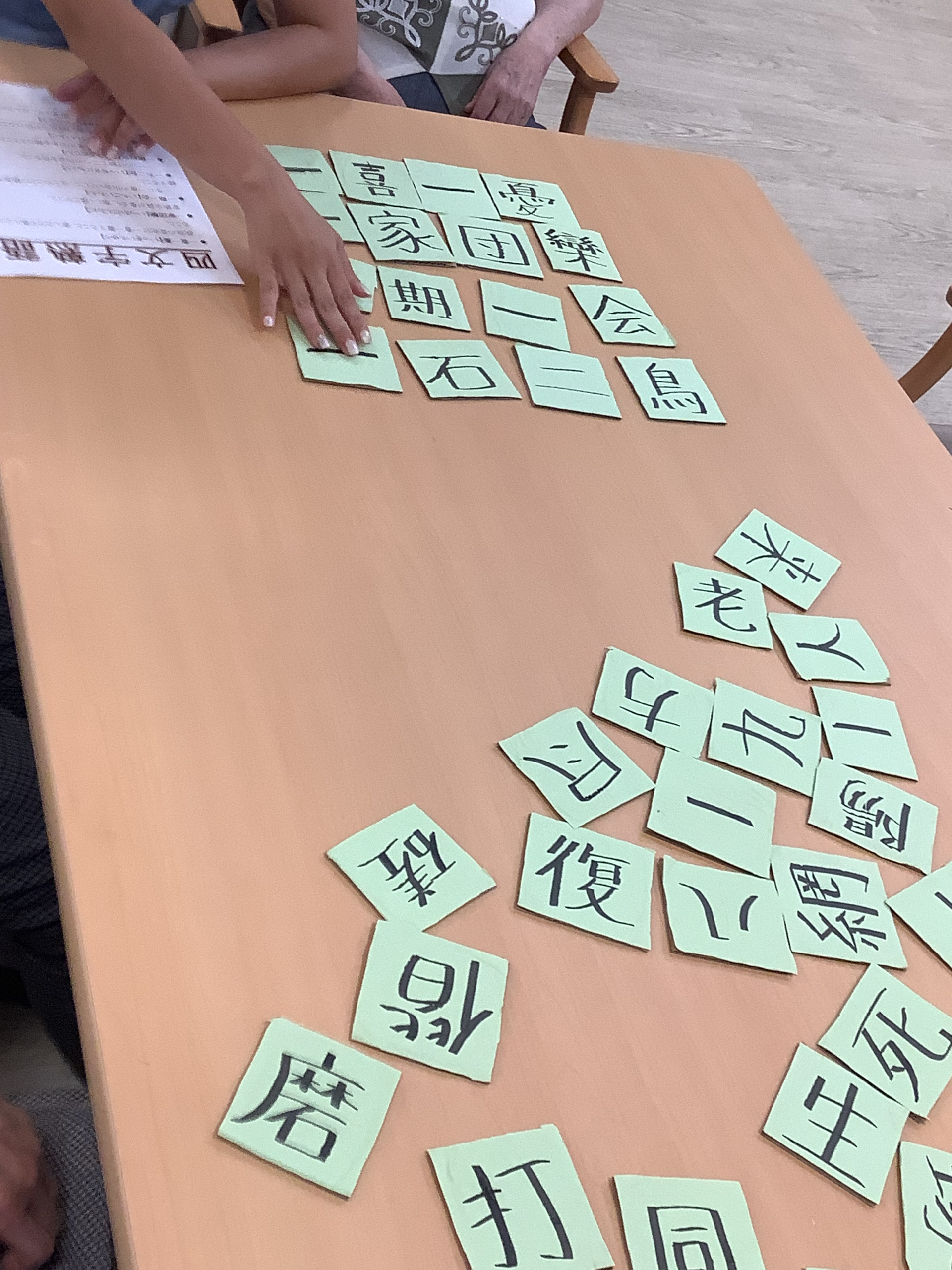 今日のレクのご様子をお知らせします(^^♪本日は、「四字熟語」を探すカードゲームを行いました!!