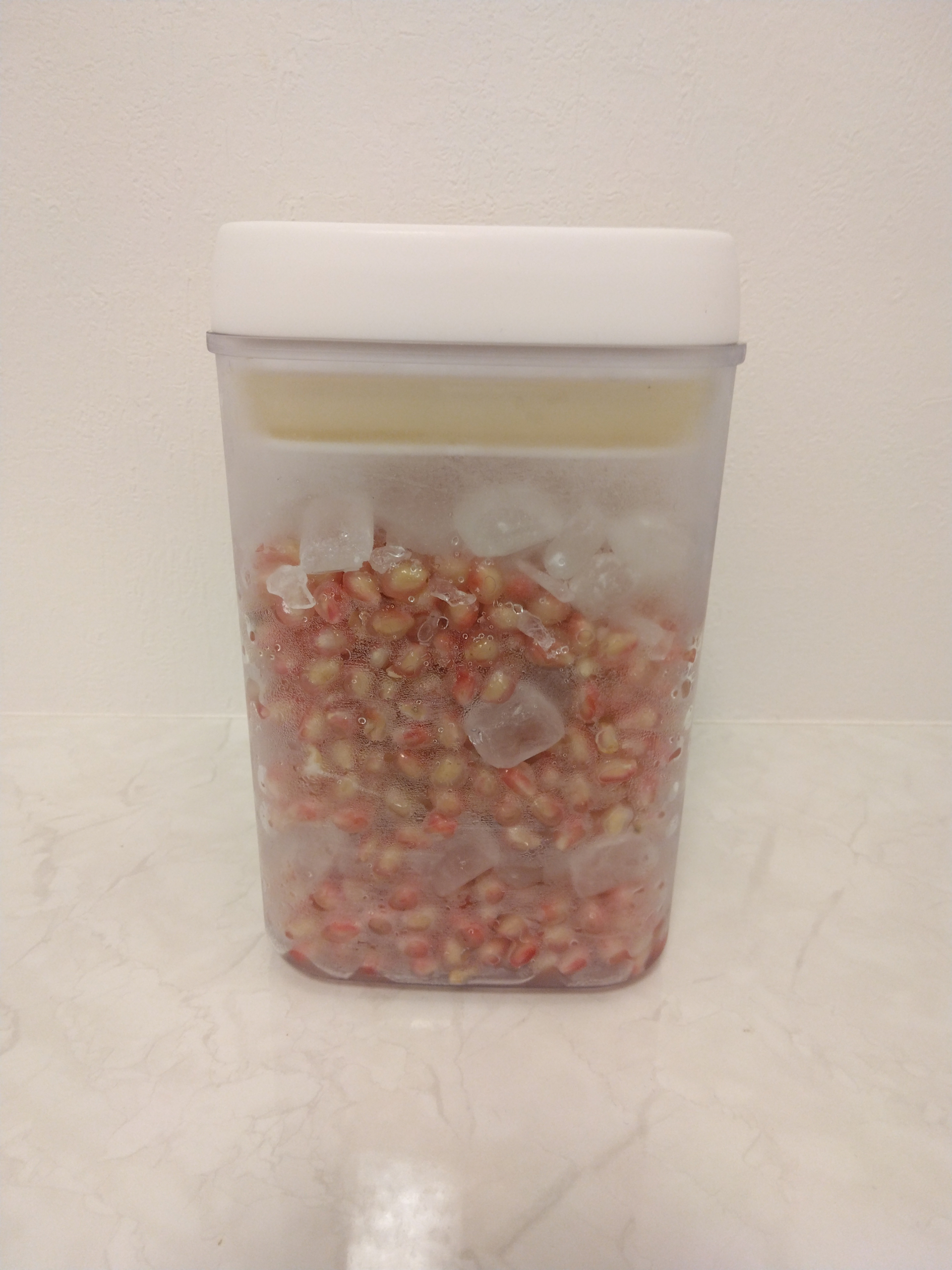 この状態で冷蔵庫に入れて何日か置くと、氷砂糖が徐々に溶けて、ザクロシロップができてくるそうです!