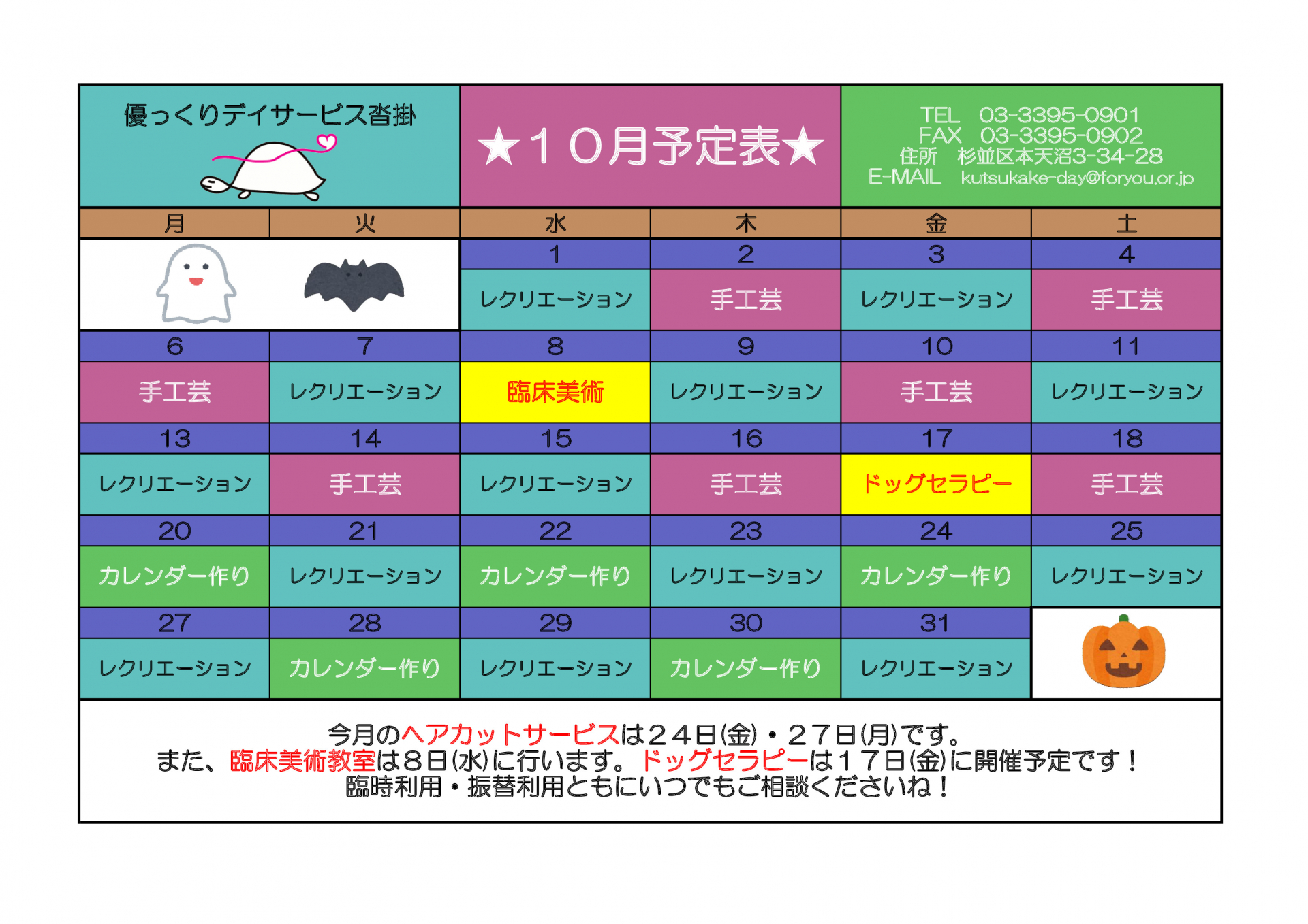 【沓掛デイ】10月の行事予定です!【予定表】