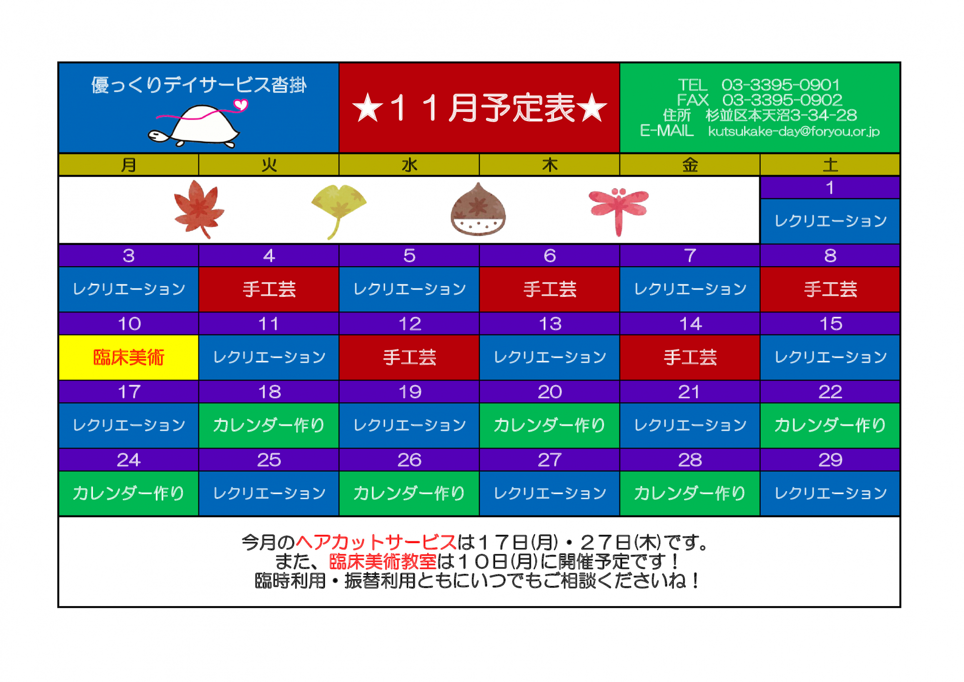 11月も皆さまのご来所を職員一同心よりお待ちしております!!