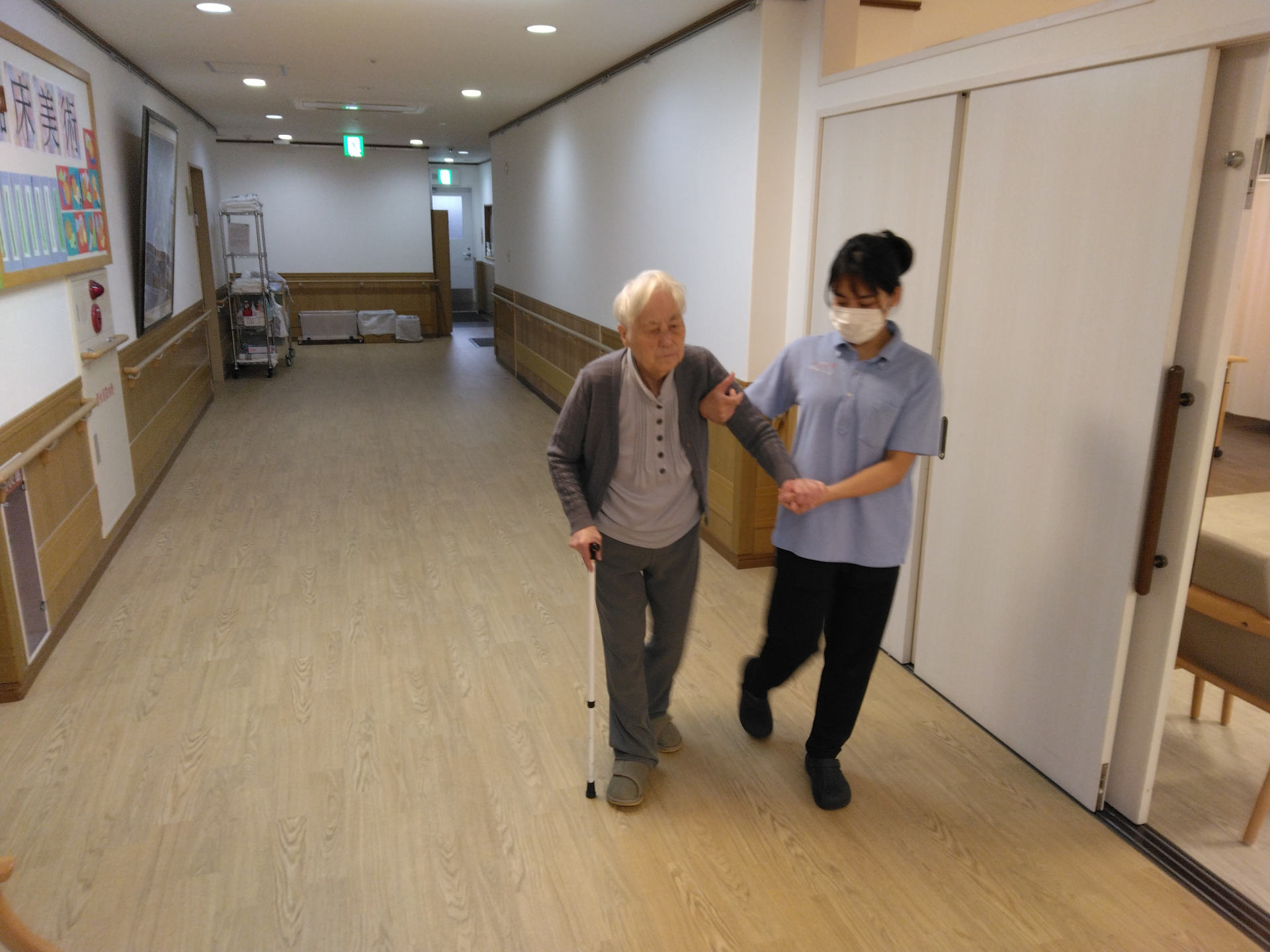 デイの長い廊下を3往復、午前と午後で計6往復歩いていただきましたよ~(^o^)/