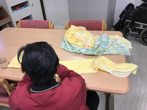 2024.01.20 活動報告 【沓掛デイ】役割支援 タオルたたみ Tweet シェアする 到着が早いY様。 入浴で使うバスタオルをたたんで頂きました。 どんどんとたたんで頂き、大助かりです。 ありがとうございました! 前の記事 2024.01.20 活動報告 【沓掛デイ】ハンマーたたき 次の記事 2024.01.20 活動報告 【沓掛デイ】役割支援 エプロンたたみ 一覧へ戻る