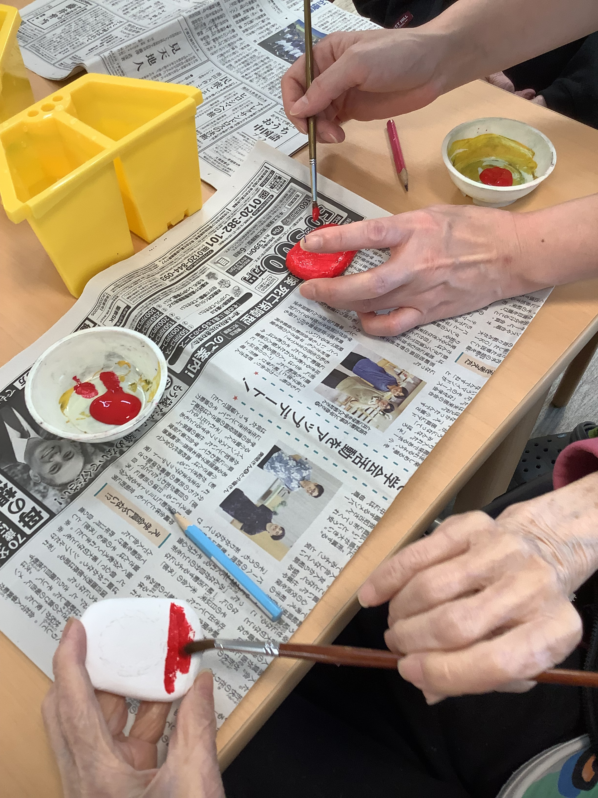 本日は、午後の手工芸プログラムでだるまを題材にしたマグネットを作りました(*^_^*)