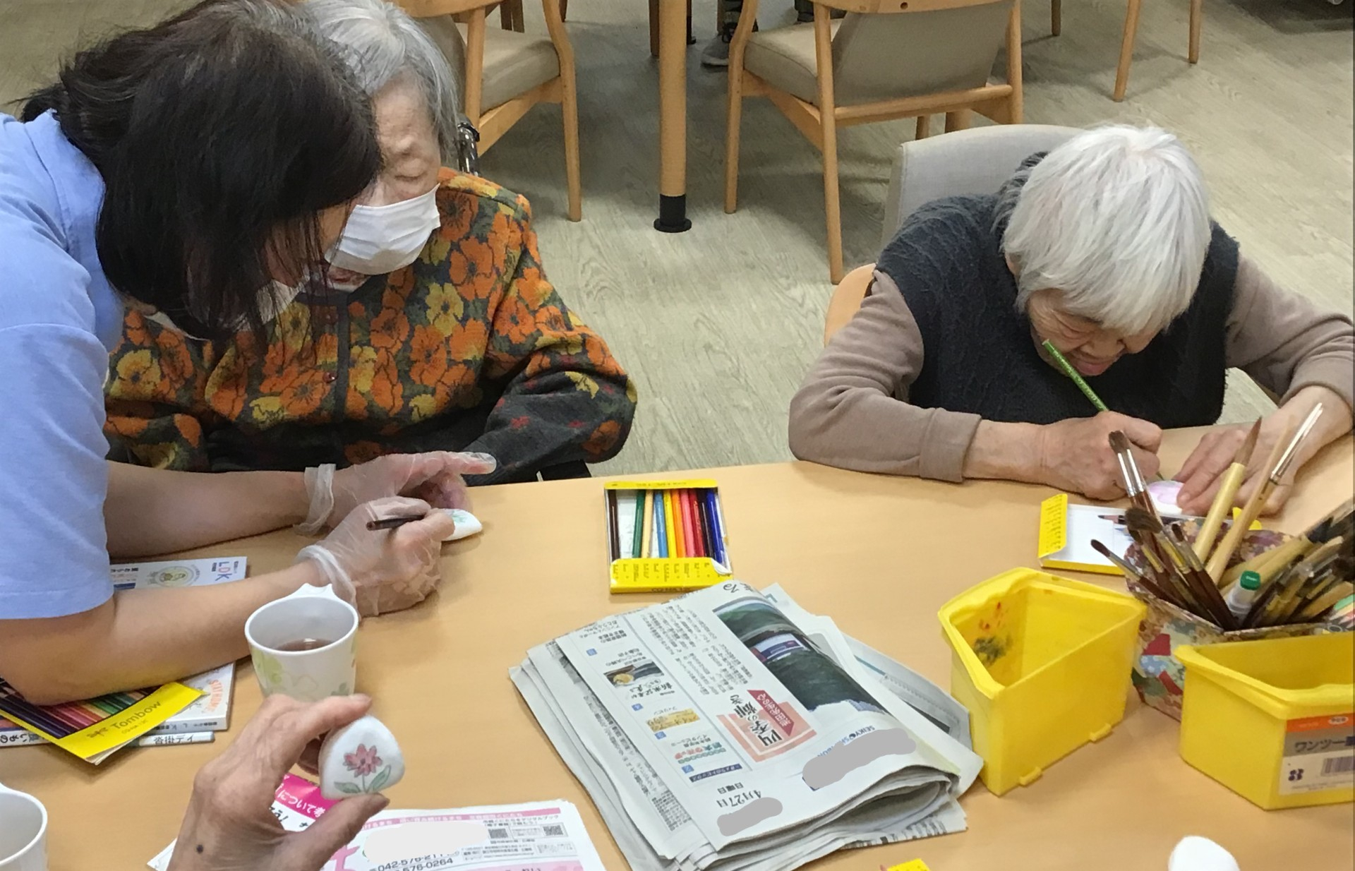 今日は手工芸レクにてマグネットにお好きなイラストを描いて頂きました^_−☆