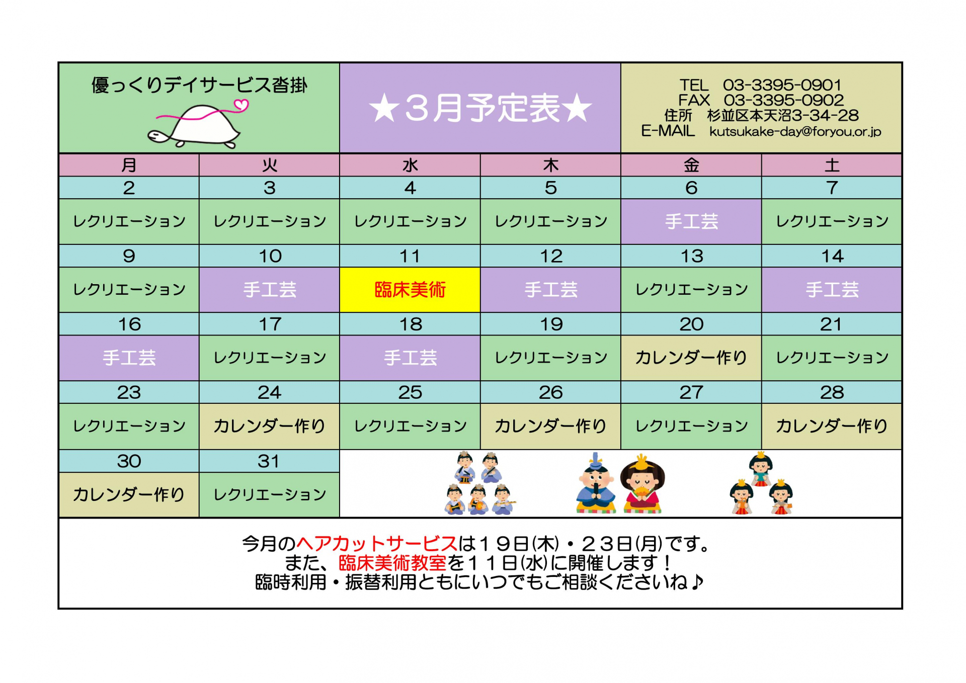 沓掛デイ、3月の行事予定をお知らせいたします~♪