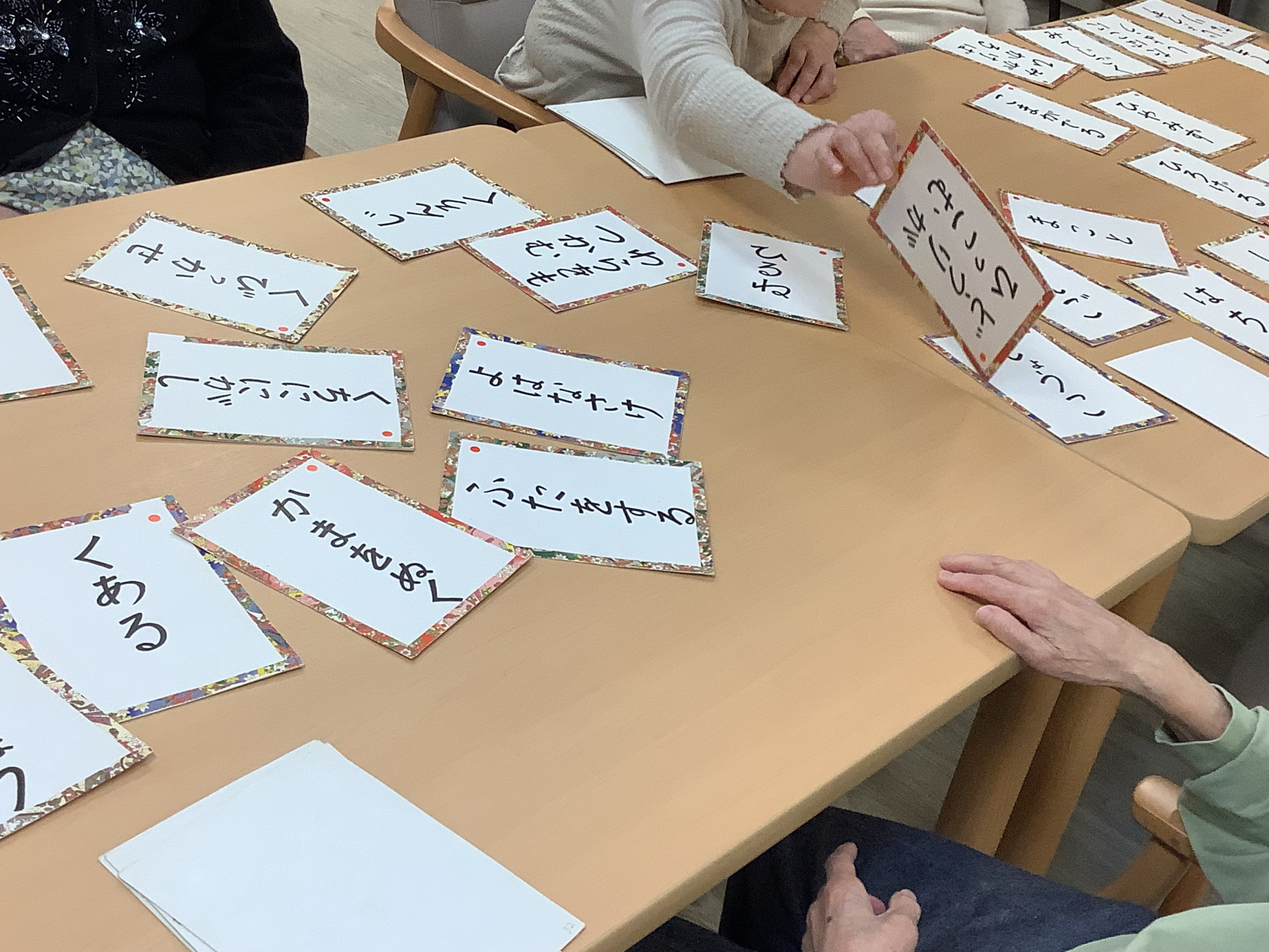 お話しの後はことわざカルタ。ことわざの前半を読み上げると、皆様で後半を諳んじながら札を取りました(*^_^*)