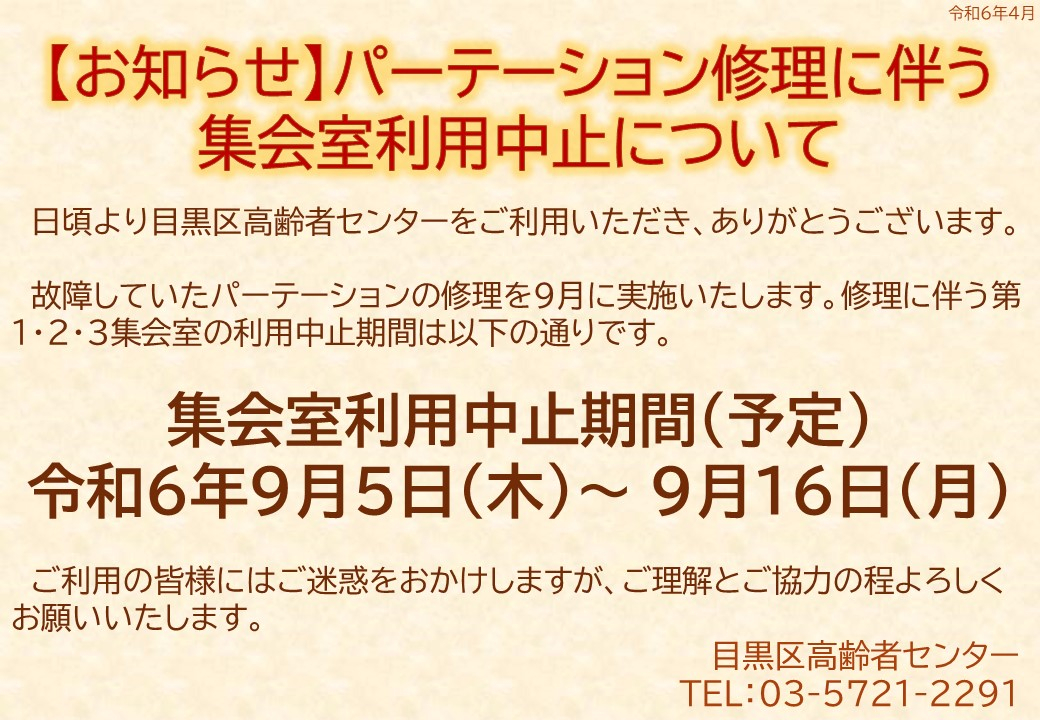 日頃より目黒区高齢者センターをご利用いただき、ありがとうございます。