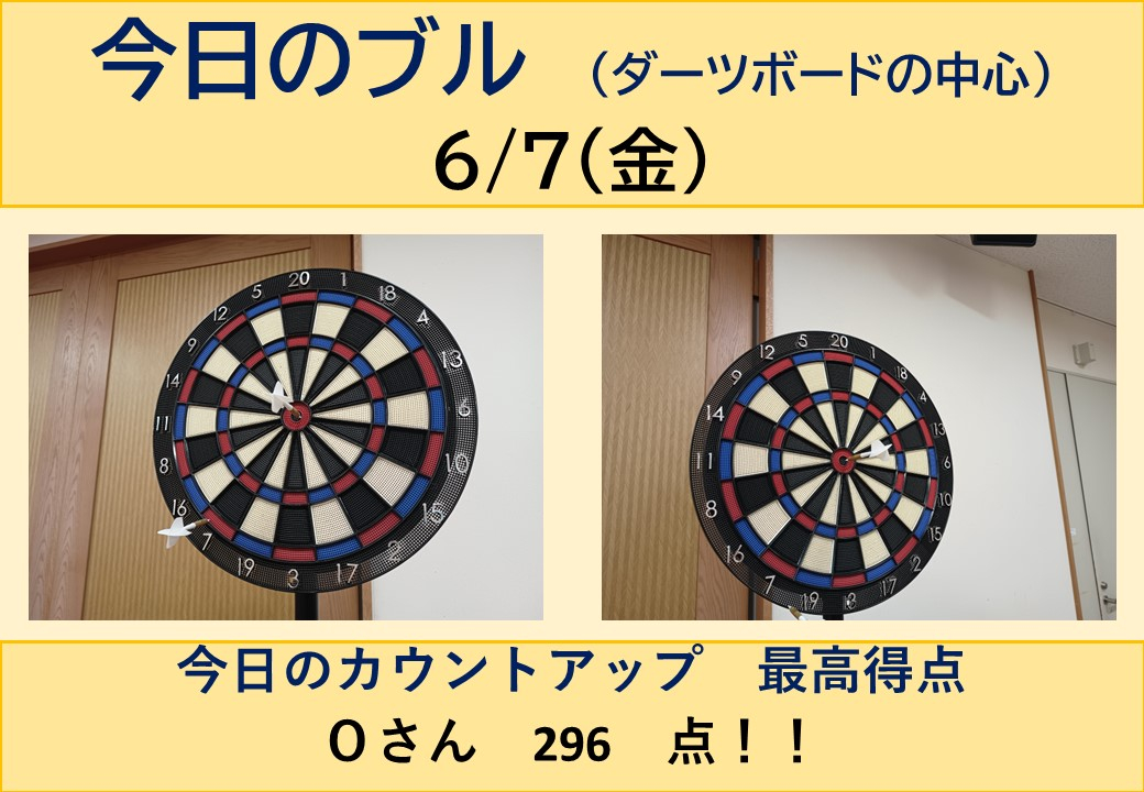 6月の健康ダーツ体験会1回目です。最高得点は296点でした。