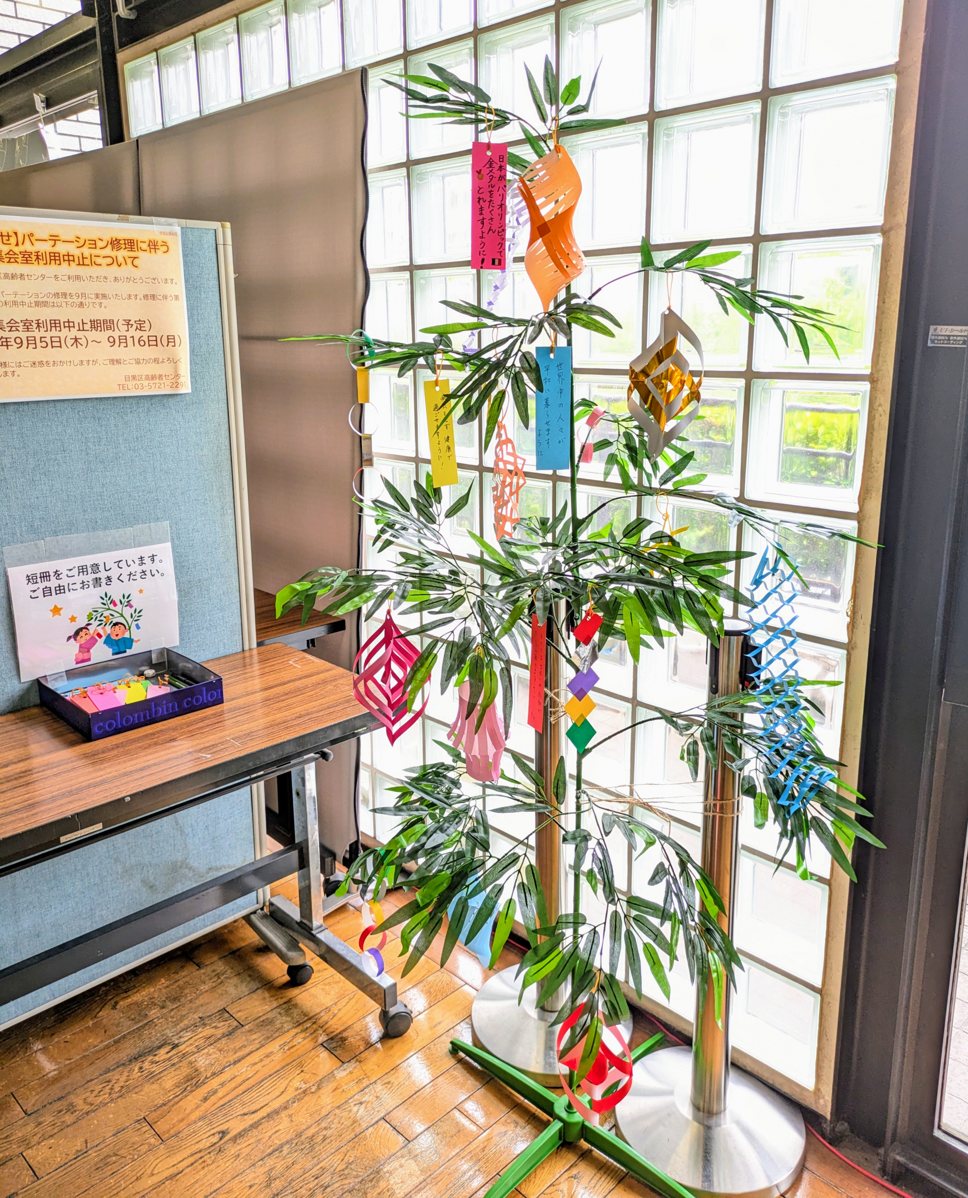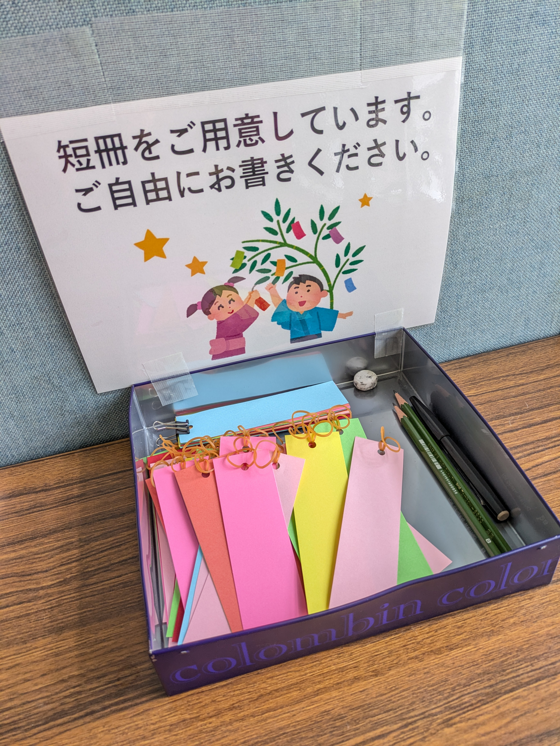 ちょうど飾りつけをしている最中にさっそく利用者様から「季節感があっていいわね~。飾りもとっても綺麗!」とお声がけいただきました!「短冊をご用意するのでぜひ願い事を書いてくださいね。」とお伝えすると「あら!じゃぁそうさせてもらうわ♪」と楽しそうな反応にこちらまで嬉しくなりました(^^)