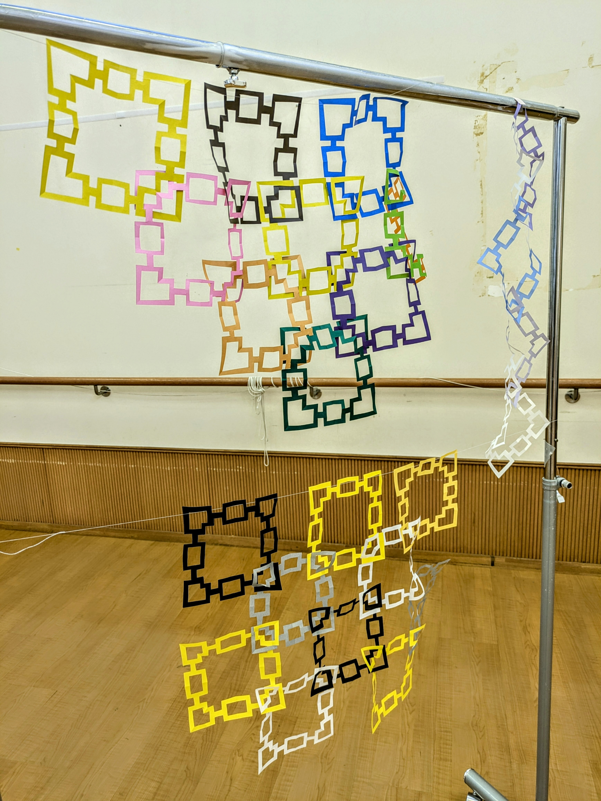 今日の切り紙は作品を繋げて空間を飾るちょっと変わった面白いアレンジを施しました。