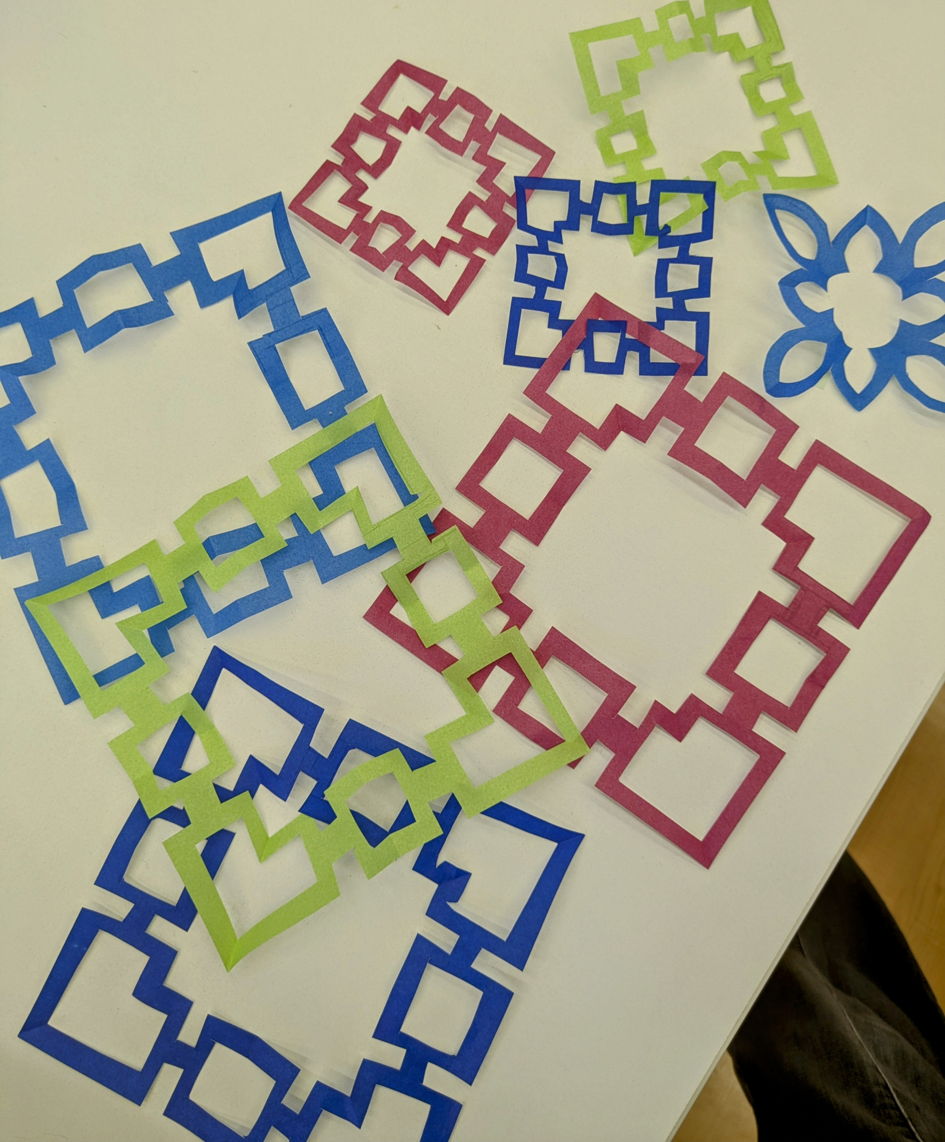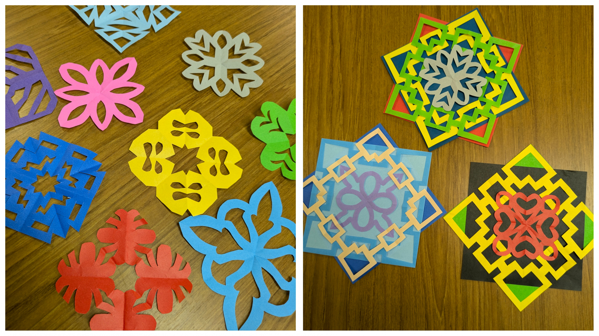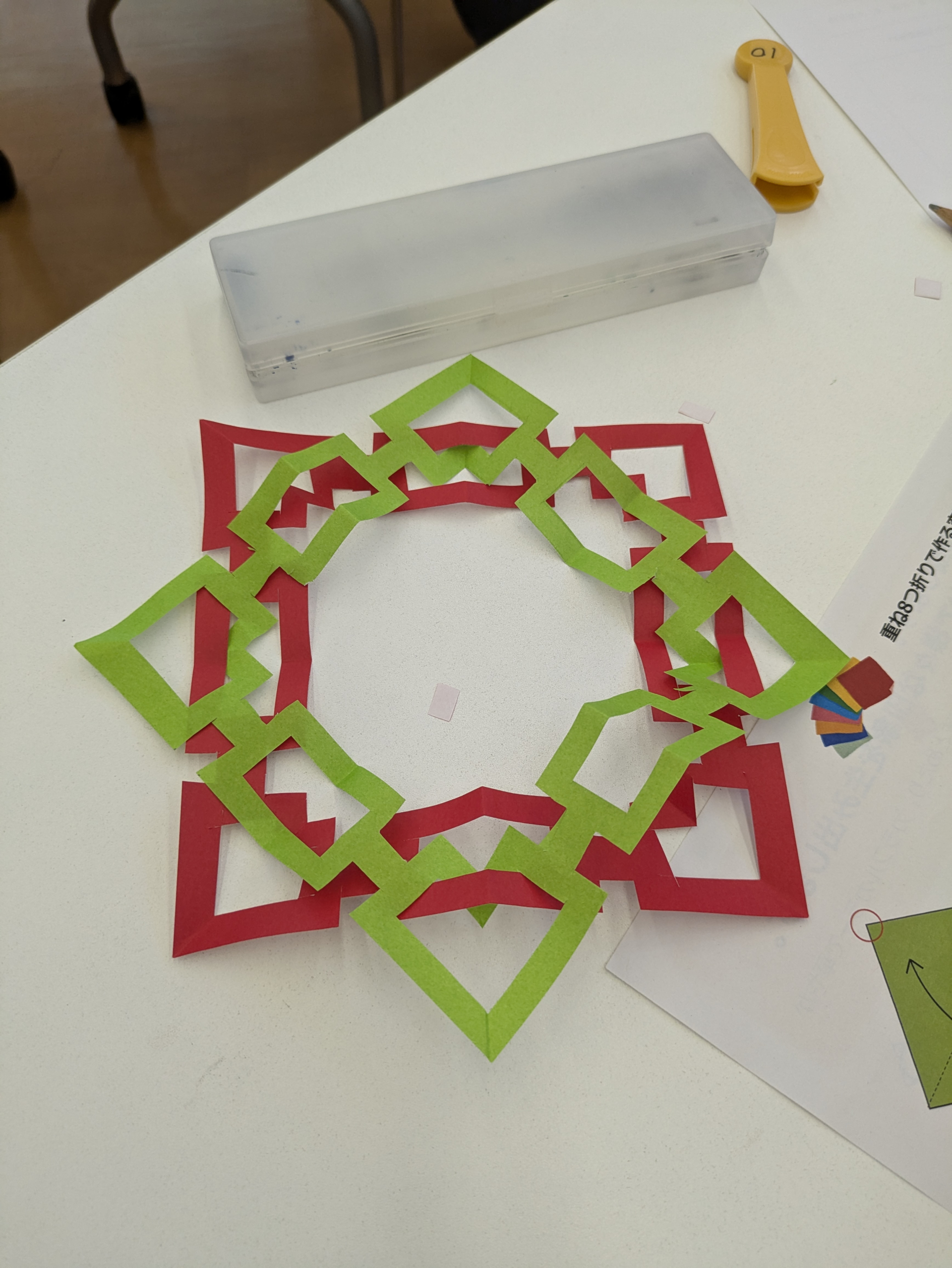 折り方は3回折るだけの簡単な手順で、線画も直線的なので比較的作りやすい上、切り落とした余った部分でも手のひらサイズの作品が作れるので一度で二度三度おいしい楽しい切り紙となりました!