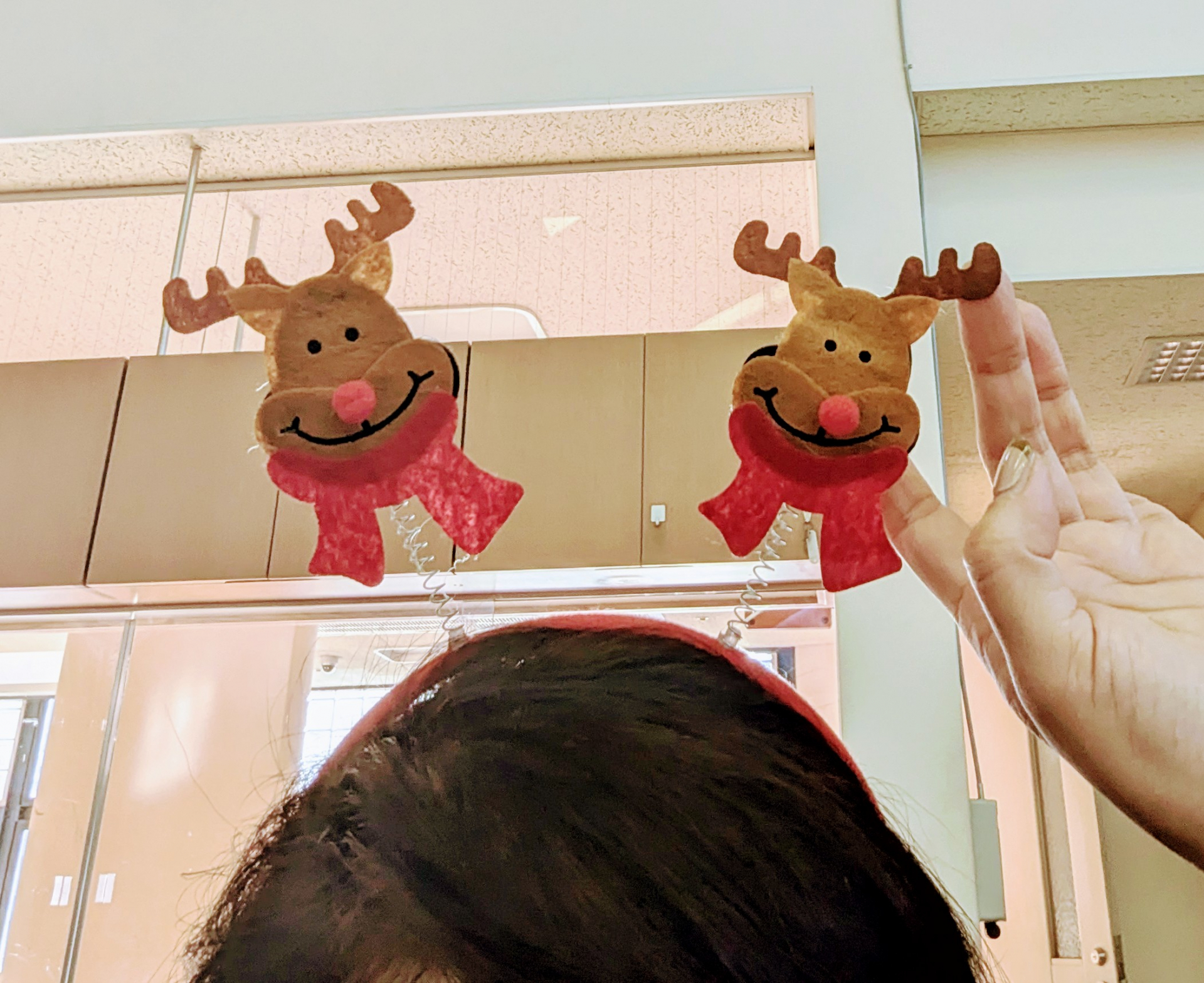 今日は先生も私も頭にXmasのカチューシャを付けました(^^)