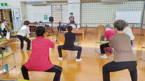2023.11.06 活動報告 「ちょこっと筋トレ」を開催しました Tweet シェアする 本日は背筋を意識した運動をしました。写真はタオルを持ち前方へ引っ張られるようにゆっくりと倒していく動きです。背中は平らなままで行います。 背筋はよい姿勢を保つために大事な筋肉です。 T,K 前の記事 2023.11.06 活動報告 会食サービスでの栄養講話 次の記事 2023.11.04 活動報告 スローエアロビック開催しました! 一覧へ戻る