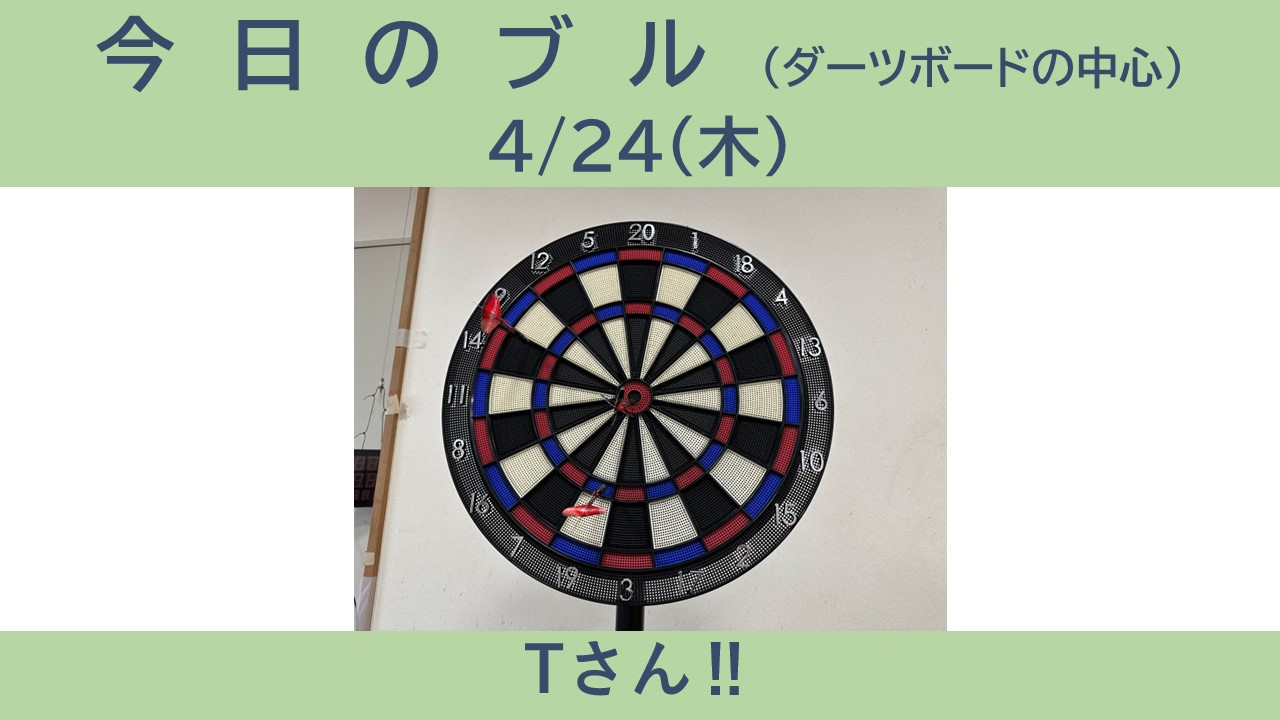 4月2回目となる健康ダーツ体験会ですが、今回はお一人「ブル(真ん中)」がでました!