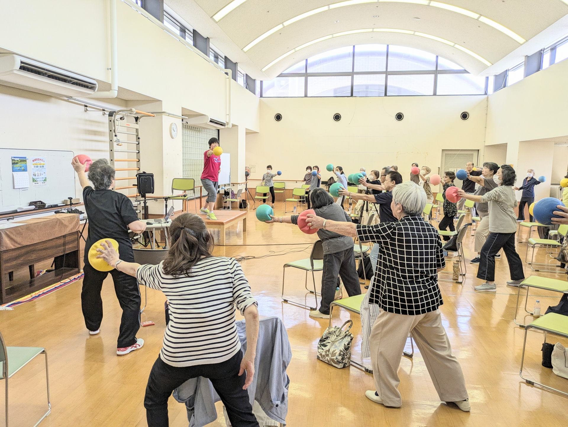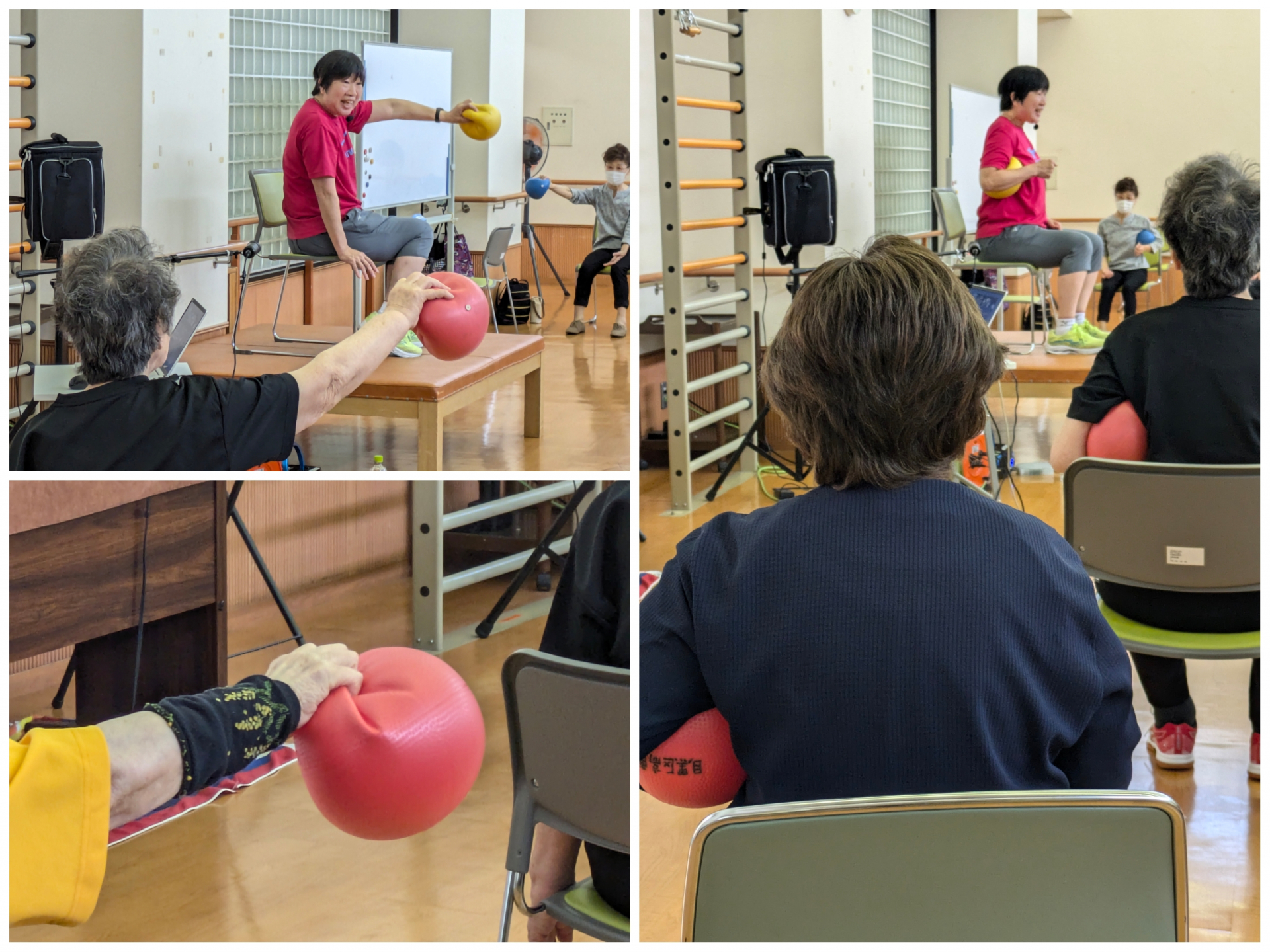 先生の楽しい掛け声と久しぶりのボールを使った運動で皆さん生き生きとしていました!