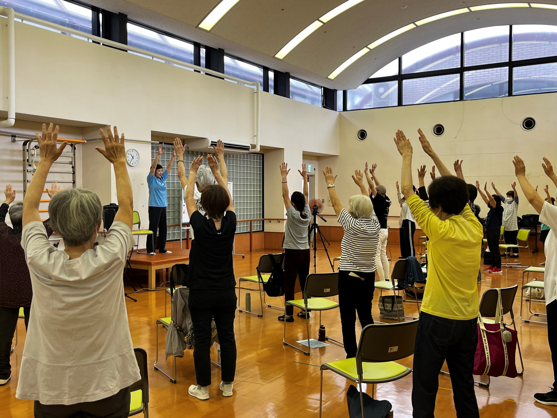 5月19日(月)、スローエアロビックを開催しました。今回は、会場での参加に加え、オンラインでもご参加いただけるハイブリッド形式での開催となり、多くの方にご参加いただきました。ありがとうございました。